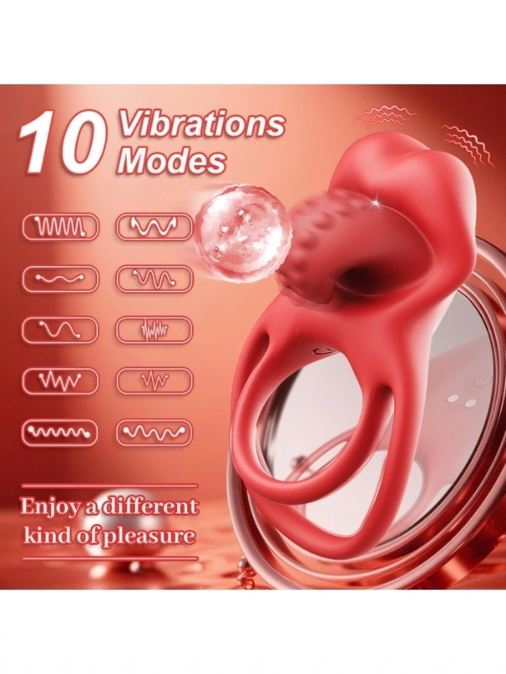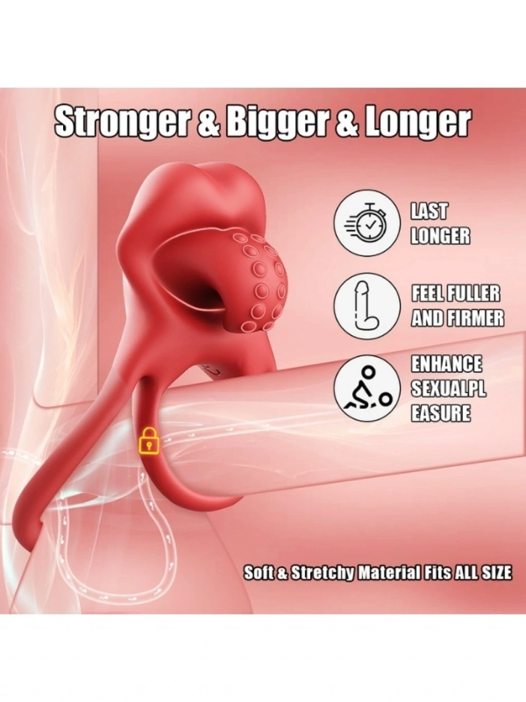 Güçlü Titreşim, Maksimum Kontrol! Kırmızı Dil Kilidi Penis Halkası, güçlü titreşim motoru ve ergonomik tasarımıyla hem zevki artırır hem de erken boşalmayı geciktirmeye yardımcı olur. Esnek silikon halkası penili sıkıca sararak kan akışını dengeler, uzun süren sertlik ve dayanıklılık sağlar. Öne Çıkan Özellikler: Tür: Vibratörler, penil halkası Özellik: Gecikme jeneratörü Ürün Adı: Penis titreşim gecikme cihazı Renk: Kırmızı Malzeme: Cilt dostu, esnek silikon Boyut: Görselde belirtilmiştir Ağırlık: Yaklaşık 60g Menşe Yeri: Guangdong, Çin Paket: Kutu ambalaj Kullanım Avantajları: Titreşimli klitoral uyarıcı ile çift taraflı zevk Esnek silikon yapısı sayesinde her boyuta uyum sağlar Gecikme ve sertlik artırıcı etki Hafif, sessiz ve kolay temizlenebilir Kullanım Önerisi: İlk kullanımdan önce kayganlaştırıcı ile birlikte uygulayın. Kullanımdan sonra ılık su ve sabunla temizleyip kurulayın.