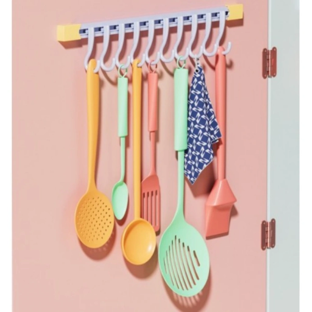 10 Kancalı Raylı Mutfak ve Banyo Düzenleyici Askı, dar alanlarda maksimum düzen sağlamak için tasarlanmış pratik bir depolama çözümüdür. Ray üzerinde bulunan 10 adet hareketli kanca sayesinde raylı askı sistemi sağa ve sola serbestçe kaydırılabilir, böylece asacağınız ürünlerin genişliğine göre aralıkları dilediğiniz gibi ayarlayabilirsiniz. Kepçe, kevgir, spatula ve kurulama bezleri için ideal olan mutfak düzenleyici askı, aynı zamanda lif, fırça ve el havlularını düzenlemek için de şık bir çözüm sunar. Eşarp, kemer ve küçük aksesuarlar için ekstra saklama alanı oluşturan 10 kancalı askı, 305 mm uzunluğu ve 50 mm yüksekliği ile en dar alanlara bile uyum sağlar. Hafif yapısı sayesinde pürüzsüz yüzeylere kolayca uygulanabilir; dolap kapaklarının içine veya fayans üzerine rahatlıkla yapıştırılabilir. Ürün Teknik Özellikleri Özellik Açıklama Ürün Adı 10 Kancalı Raylı Mutfak ve Banyo Düzenleyici Askı Kanca Sayısı 10 adet (hareketli) Uzunluk 305 mm Yükseklik 50 mm Montaj Pürüzsüz yüzeylere yapışarak uygulanır Kullanım Alanı Mutfak, banyo, dolap içi ve aksesuar düzenleme Paket İçeriği1 Adet 10 Kancalı Raylı Mutfak ve Banyo Düzenleyici Askı