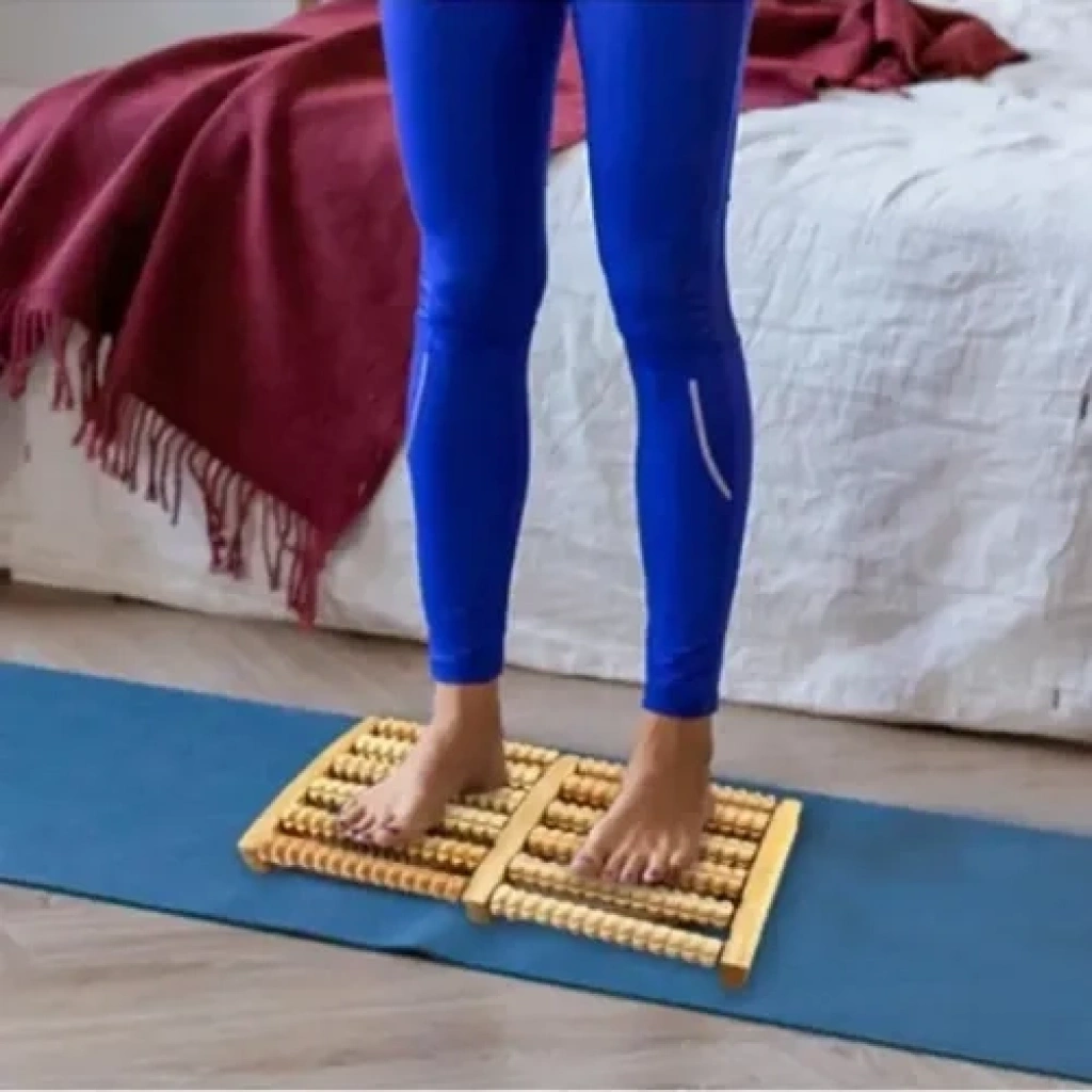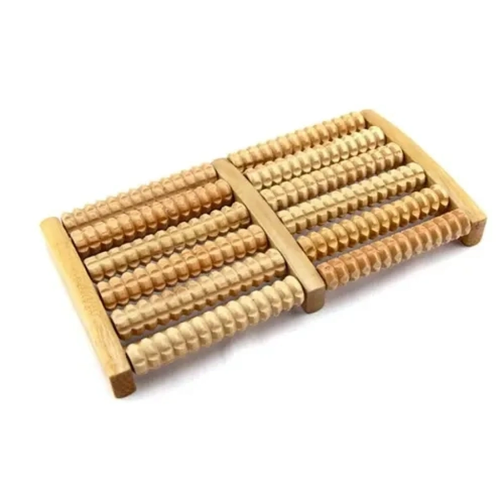 10 Silindirli Ahşap Ayak Masaj Aleti ile günün yorgunluğunu ayaklarınızdan atın! Tamamen doğal ahşap malzemeden üretilmiş olan bu masaj aleti, ayaklarınızdaki akupunktur noktalarına baskı uygulayarak kan dolaşımını hızlandırır ve derin bir rahatlama sağlar.Üzerinde yer alan 10 adet dönen silindir (beşerli iki sıra halinde), ayak tabanınızdaki kasları etkili bir şekilde uyarır ve yorgunluğu azaltır. Evde, ofiste veya herhangi bir yerde otururken kolayca kullanabileceğiniz bu alet, stres ve ağrıları gidermek için doğal, kimyasalsız ve uygun fiyatlı bir çözümdür.