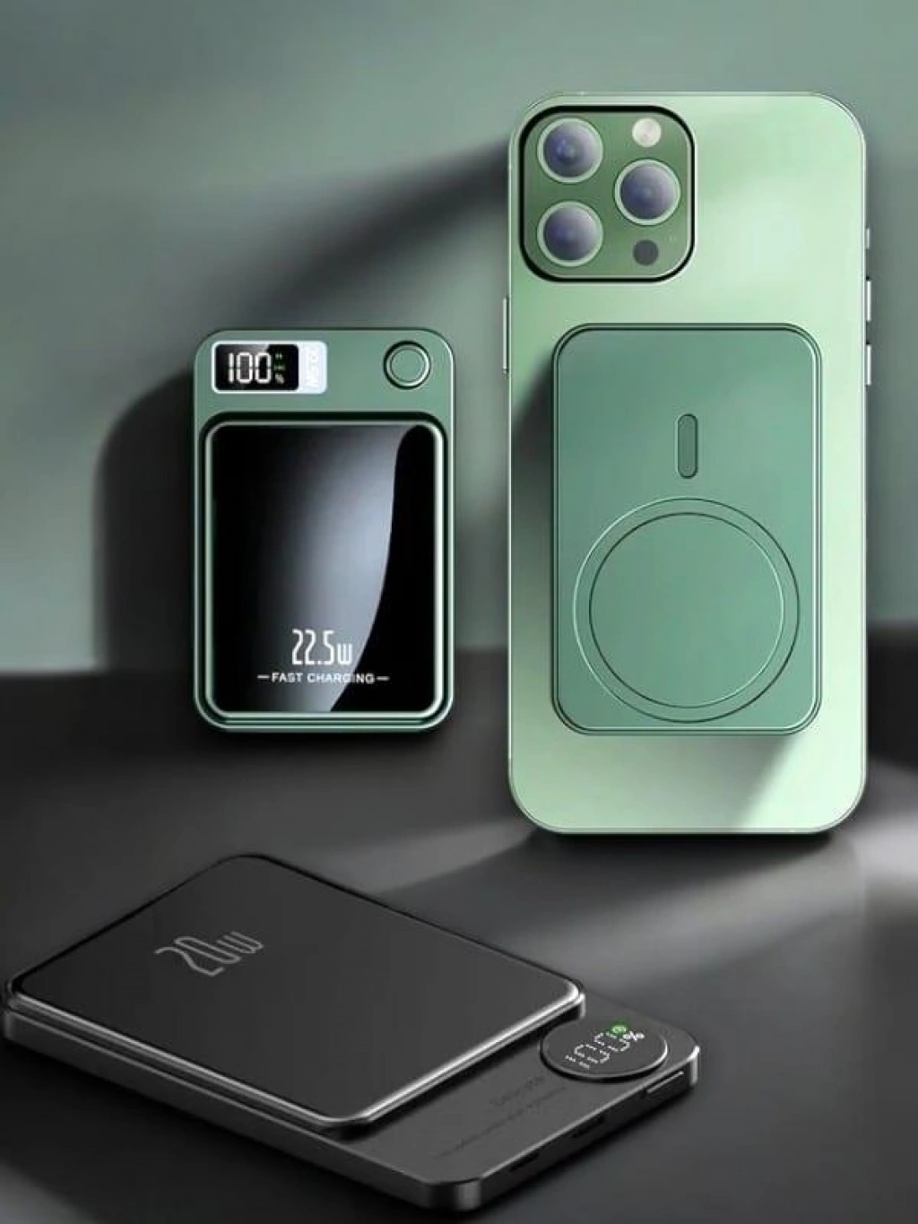 10.000 mAh Wireless Şarjlı Powerbank Magsafe 22.5 Watt Hızlı Şarj Edilebilir PowerBank Yüksek performanslı şarj deneyimi ve şık tasarımıyla her an yanınızda. Hızlı Şarj Teknolojisi: 22.5 watt'lık hızlı şarj özelliği sayesinde cihazlarınızı hızla doldurun. Zamanınızı daha etkin kullanın ve her an iletişimde kalın. Magsafe Uyumluluğu: Apple cihazlarınızla uyumlu olan Magsafe teknolojisi ile mükemmel bir uyum sağlar. Güvenli ve güçlü bağlantı ile cihazlarınızı kolayca şarj edin. Geniş Uyum: iPhone, iPad, AirPods ve diğer Qi uyumlu cihazlarla uyumludur. Herhangi bir Apple cihazınızı şarj etmek için idealdir. Taşınabilirlik: Hafif ve ince tasarımıyla kolayca taşınabilir. Seyahatlerde, iş gezilerinde veya günlük kullanımda size pratiklik sunar. İki Renk Seçeneği: Siyah ve beyaz olmak üzere üç farklı renk seçeneğiyle tarzınıza uygun olanı seçin. Güvenlik ve Dayanıklılık: Yüksek kaliteli malzemelerden üretilmiş olan powerbank, aşırı şarj, kısa devre ve aşırı ısınma gibi durumlarda otomatik olarak koruma sağlar. Kapasite: (10000mAh/5000mAh) kapasite ile uzun süreli kullanım imkanı sağlar.