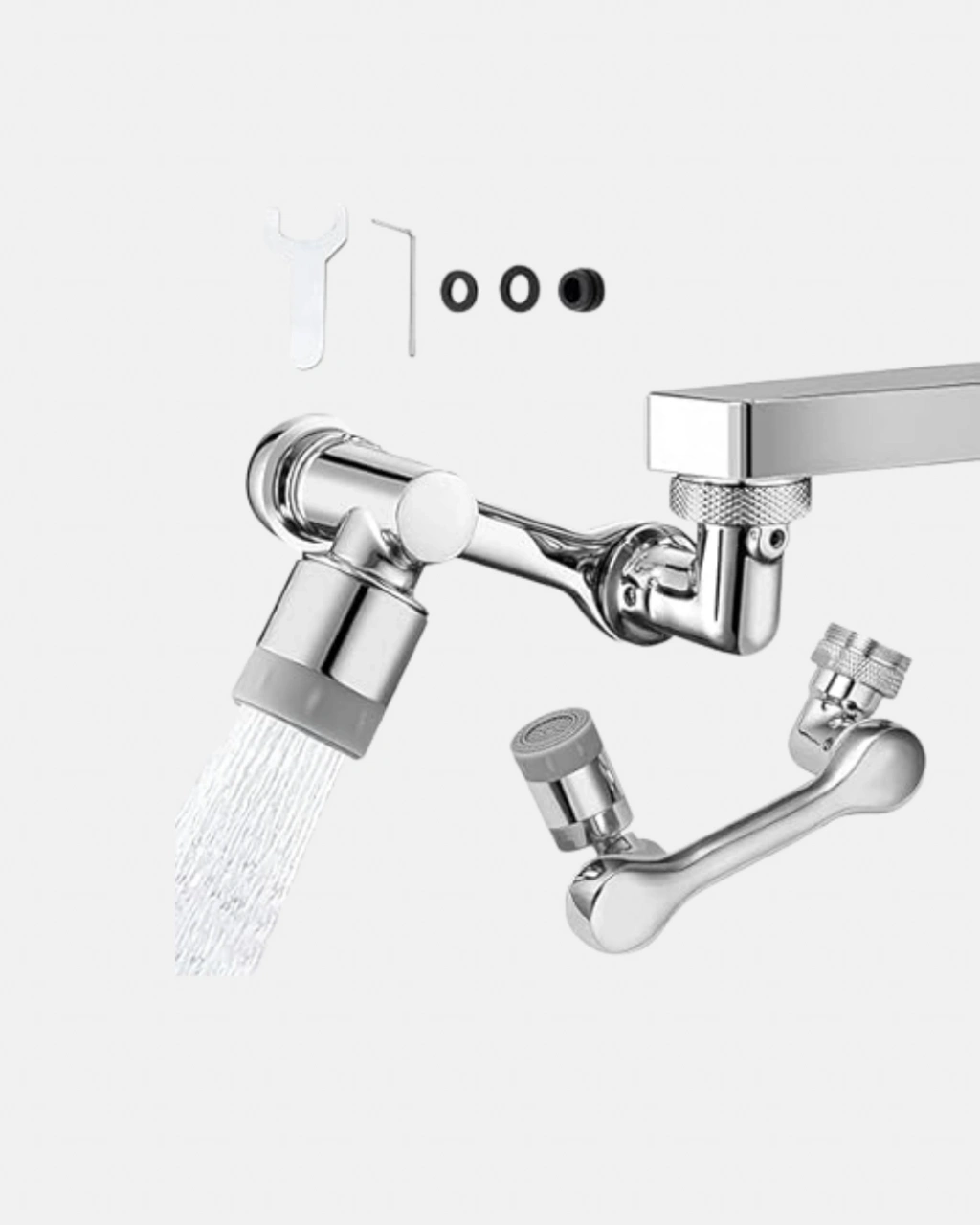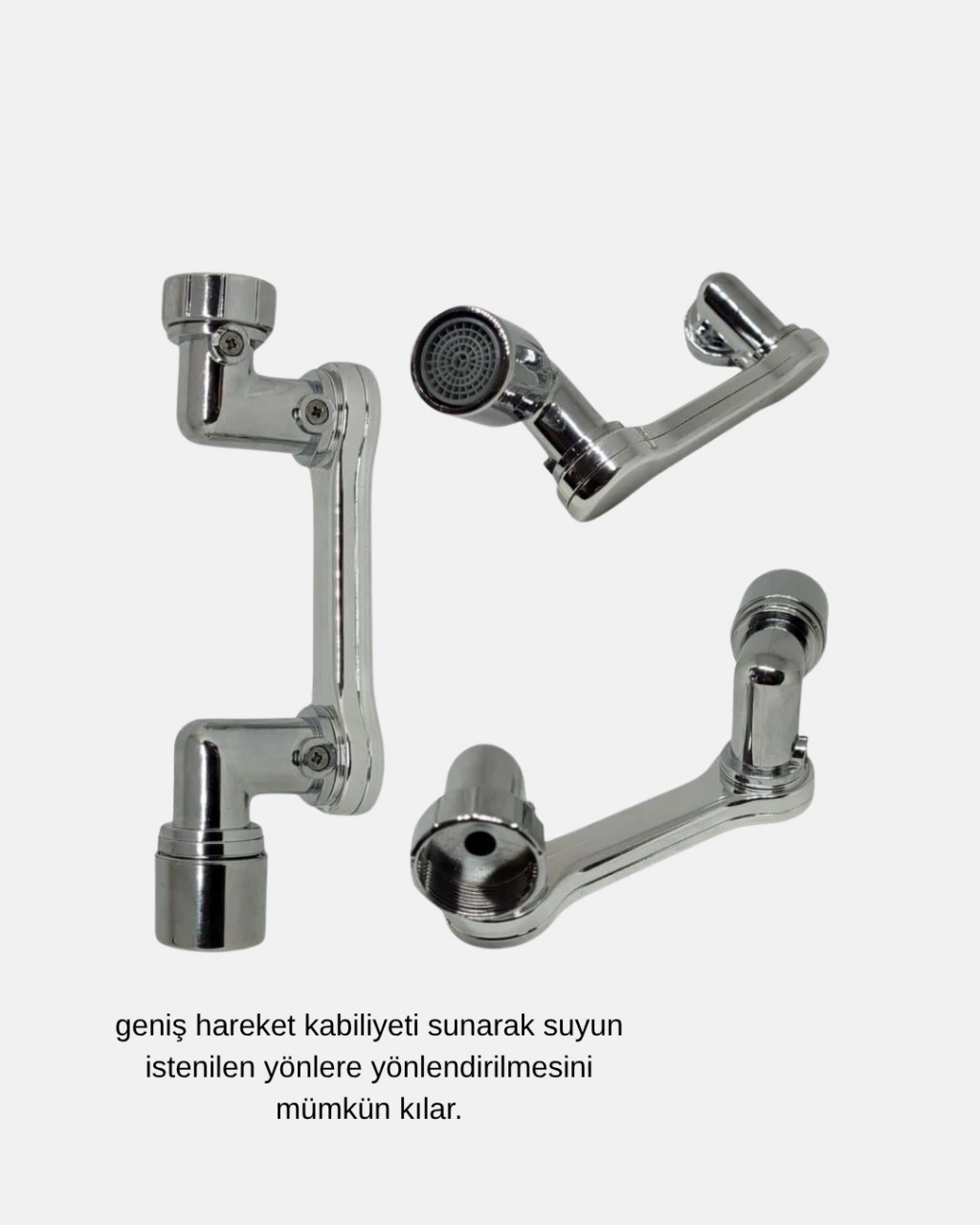 1080° dönebilen musluk ucu, mutfak ve banyo lavabolarında suyu her köşeye ulaştırarak benzersiz bir kullanım kolaylığı sunar. Çift eksenli dönebilen tasarımı sayesinde su akışını yukarı, aşağı, sağa veya sola yönlendirebilir, böylece temizlik işlemleri çok daha pratik hale gelir. Geniş hareket alanı, özellikle büyük lavabolarda ve derin temizlik gerektiren alanlarda suyun etkili bir şekilde yayılmasını sağlar. Dayanıklı paslanmaz çelik gövdesi uzun ömürlü kullanım sunarken, Musluk başlığında bulunan su tasarruf filtresi, suyun basıncını dengelerken %30’a kadar tasarruf sağlar. El-yüz yıkarken, sebze ve meyve temizlerken veya lavaboyu durularken mükemmel konfor sunar. Montajı son derece basittir, özel bir alet gerektirmez. Şık ve modern görünümüyle her lavaboya kolayca uyum sağlar.