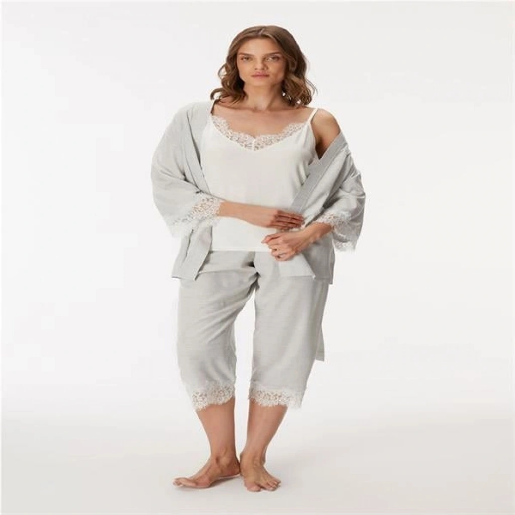 VipMarketim Kadın Sabahlık, Atlet Ve Pantolon Takım (Kod:11403)