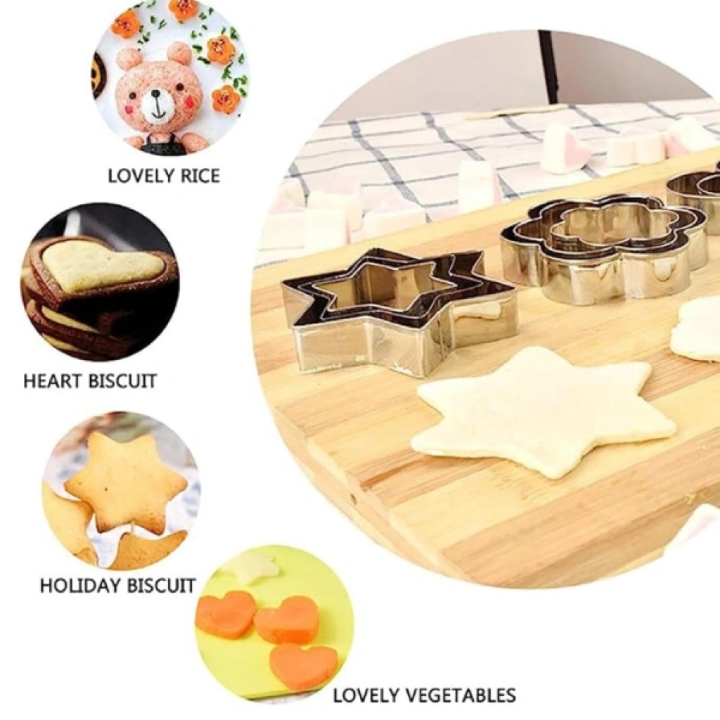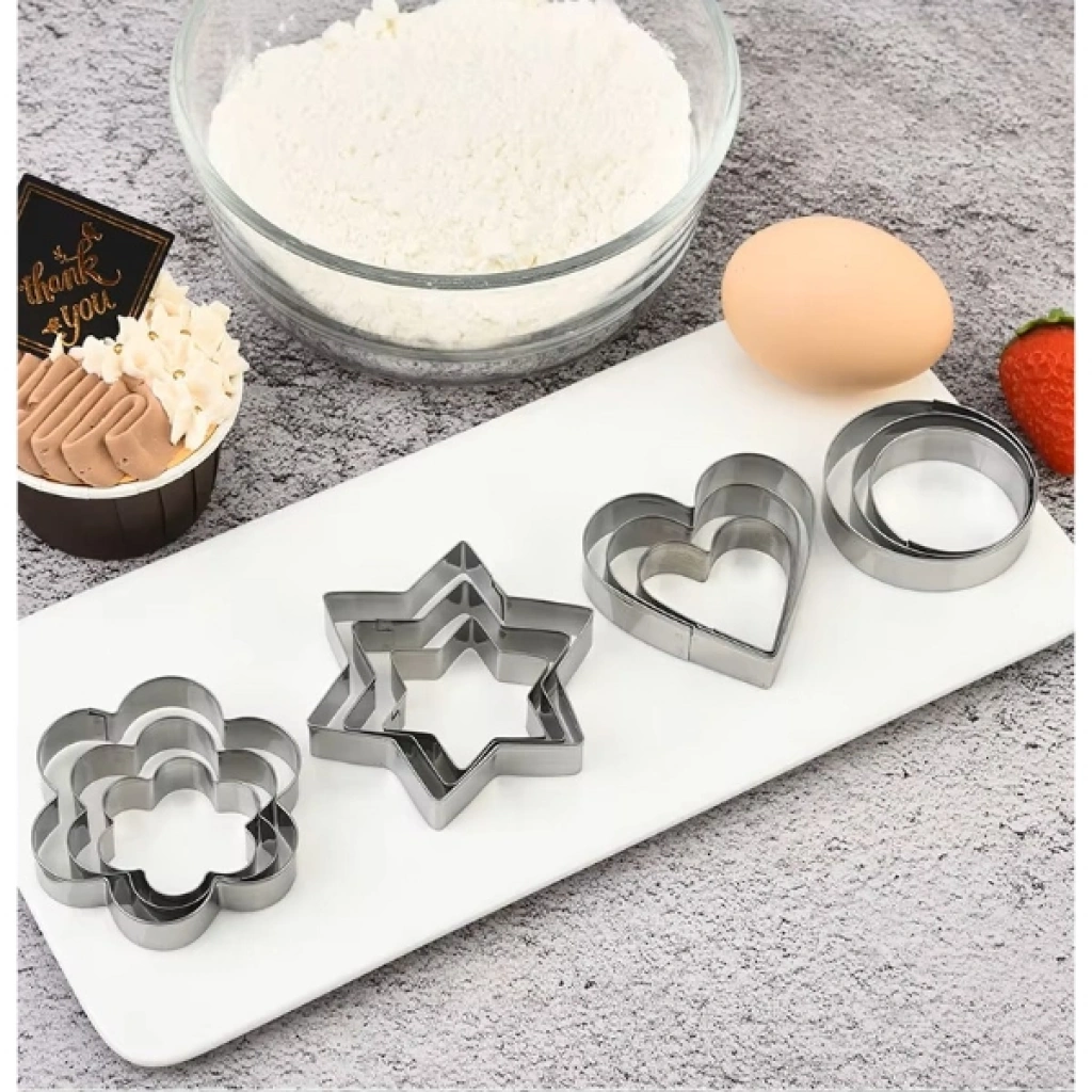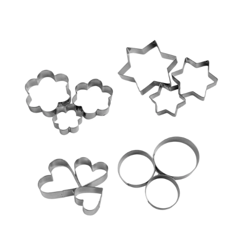 12 adet paslanmaz çelik kurabiye kalıbı seti, dayanıklı ve hijyenik yapısıyla mutfakta pratik kullanım sağlar. Kalpler, yıldızlar, çiçekler ve daireler gibi 4 farklı şekli bulunan bu set, her şeklin üç farklı boyutuyla toplam 12 parçadan oluşur. Yalnızca kurabiye hamuru için değil, aynı zamanda sebze, meyve, yumurta veya hamur işi sunumlarında da yaratıcı biçimlendirmeler yapmanıza imkân tanır. Paslanmaz çelik yapısı sayesinde uzun ömürlü kullanım sunar ve kolay temizlenir. Pürüzsüz kenarları sayesinde güvenli bir kullanım deneyimi sağlar. Evde, kafelerde veya pastanelerde dekoratif sunumlar yapmak isteyenler için ideal bir yardımcıdır. Paket İçeriği1 adet 12’li paslanmaz çelik kurabiye kalıbı seti