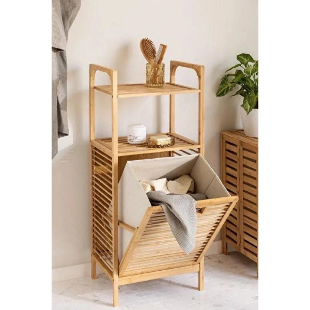 2 organizer raflı ahşap bambu çek-aç kirli sepeti, 40x35x95 cm ölçüleriyle hem fonksiyonel hem de estetik bir çözüm sunar. Çek-aç mekanizması sayesinde çamaşırların kolayca yerleştirilmesini ve çıkarılmasını sağlar. Üst kısmında yer alan 2 adet organizer raf, deterjan, havlu veya diğer banyo malzemelerini düzenlemek için ekstra alan sunar.Doğal bambu malzemeden üretilen yapısı dayanıklı, nem ve rutubete karşı dirençlidir. Çıkarılabilir kumaş iç haznesi hijyenik kullanım sağlarken, pratik taşıma kolaylığı sunar. Modern tasarımıyla banyo, çamaşır odası veya yatak odasında dekoratif bir görünüm kazandırır. Hem yerden tasarruf sağlar hem de düzenli bir yaşam alanı oluşturur. Paket İçeriği1 adet 2 Organizer Raflı Ahşap Bambu Çek-Aç Kirli Sepeti