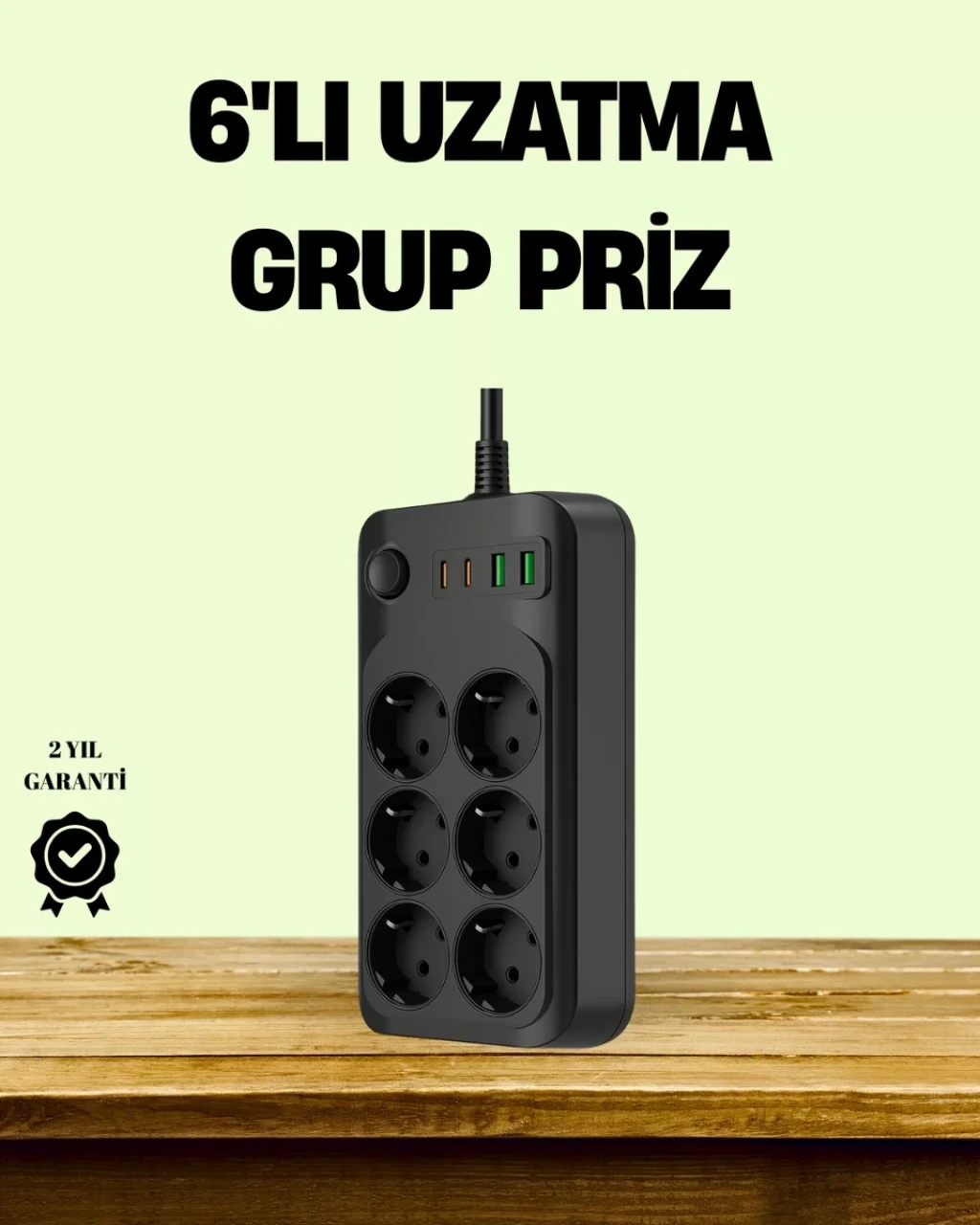 6 çıkışlı termal akım korumalı grup priz, modern kullanım ihtiyaçlarına uygun olarak geliştirilmiştir. Ev, ofis, atölye ve teknik alanlarda güvenli enerji dağıtımı sağlar. USB ve Type-C çıkışları hızlı şarj desteği sunarken, 2500W güç kapasitesi yüksek watt değerine sahip cihazlarda bile stabil performans oluşturur. Termal akım koruması, aşırı yüklenme durumlarında devreyi güvenli şekilde yönetir. 10A güç koruma ünitesi cihazlarınızı elektriksel risklere karşı muhafaza eder. 2 metrelik kablosu geniş yerleşim avantajı sunarken, kompakt ve dayanıklı tasarımı uzun ömürlü kullanım sağlar.