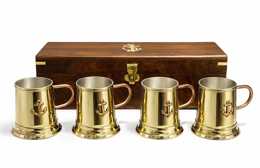 29x7 cm Ahşap Kutulu 4'lü Pirinç Fincan Seti, sunumlarınıza nostaljik bir asalet ve geleneksel bir şıklık katmak için tasarlanmış seçkin bir koleksiyon parçasıdır. Set içerisinde yer alan 4 adet fincan, pirinç görünümlü kaliteli malzeme yapısıyla antik bir doku sunarken, parlak yüzeyleri sayesinde her türlü sofrada dikkatleri üzerine çeker. Ürünün en belirgin özelliği olan özel işçilikli ahşap kutusu, fincanların güvenle muhafaza edilmesini sağlamasının yanı sıra setin hediye değerini en üst seviyeye taşır. Kutunun ön kısmında bulunan gold renkli kilit mekanizması ve üst yüzeyindeki denizci çapası işlemesi, ürüne marin temalı ve vintage bir karakter kazandırır. Bu dekoratif fincan seti, hem misafirlerinize unutulmaz sunumlar yapmanız için hem de evinizin en özel köşesinde sergilemek için idealdir. Dayanıklı yapısı ve zamansız tasarımıyla öne çıkan bu pirinç sunum seti, özellikle antika meraklıları ve deniz tutkunları için prestijli bir hediyelik eşya seçeneğidir. Hem fonksiyonel bir kullanım hem de estetik bir görsel şölen sunan bu set, kaliteden ödün vermeyenler için özenle hazırlanmıştır. Ürün Teknik Özellikleri ÖzellikAçıklama Ürün Adı4'lü Pirinç Fincan Seti Kutu Boyutu29x7 cm Fincan Adedi4 Adet MalzemePirinç Görünümlü Kaliteli Metal ve Doğal Ahşap Kutu TasarımÇapa Desenli, Kilitli Ahşap Muhafaza Kutusu RenkParlak Pirinç / Antik Gold ve Koyu Ahşap Kullanım AlanıMutfak Sunumları, Vitrin Dekorasyonu, Koleksiyon Paket İçeriği4 Adet Pirinç Fincan ve 1 Adet Özel Tasarım Ahşap Kutu
