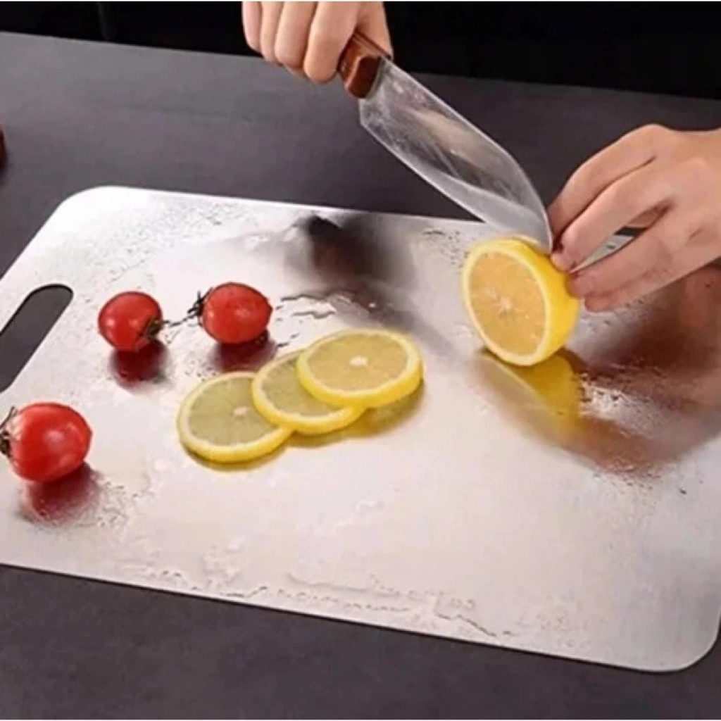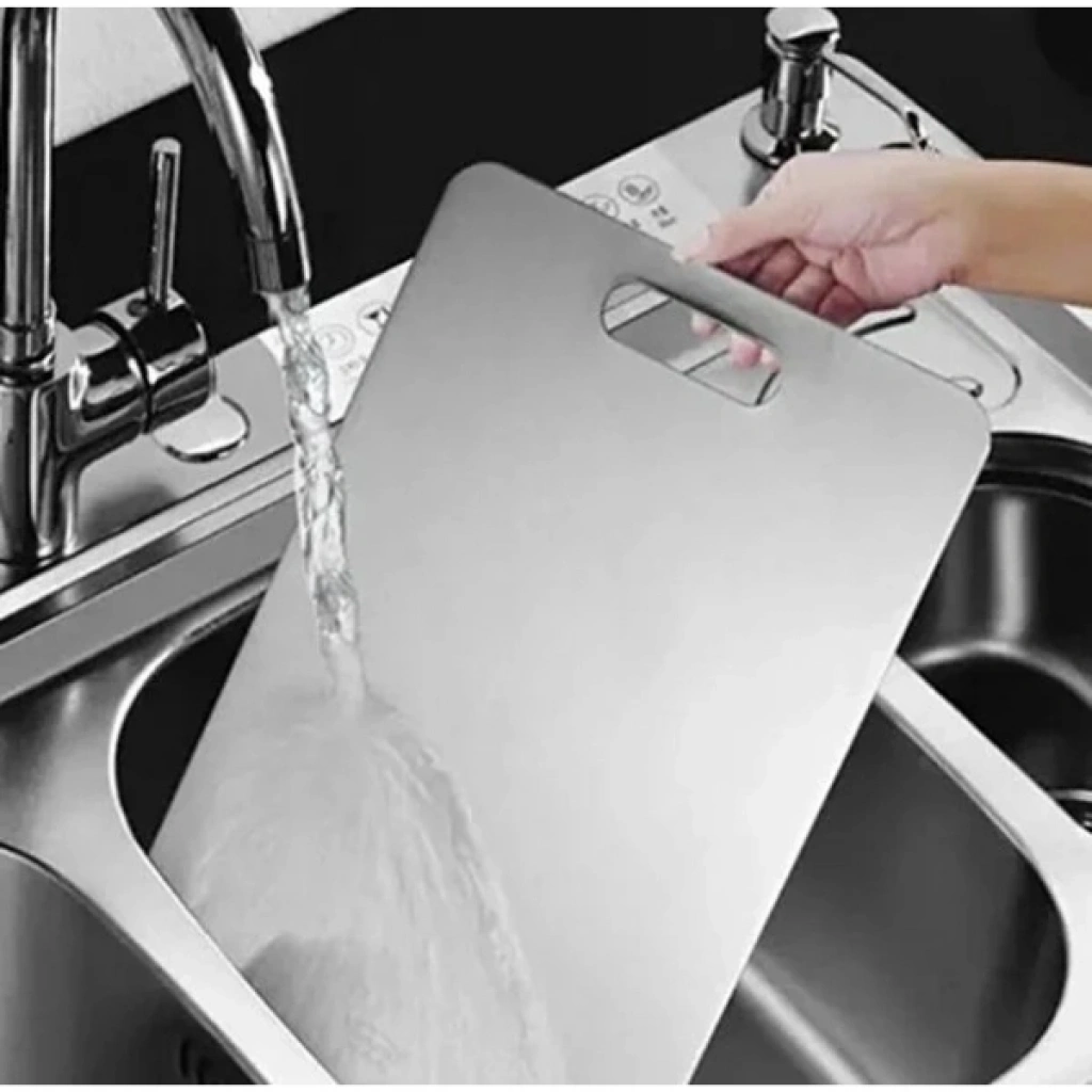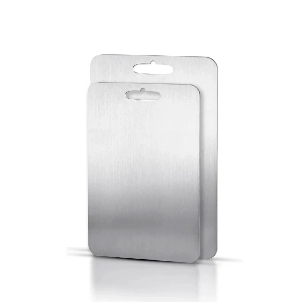 2’li paslanmaz çelik kesim panosu seti, mutfakta hijyenik ve uzun ömürlü kullanım için özel olarak tasarlanmıştır. 18/10 304 kalite paslanmaz çelikten üretilmiş olan bu panolar, gıda için en uygun ve sağlıklı çelikten üretilmiştir, çift taraf skoçlu yüzeyleri sayesinde her iki yüzeyi de kesim için kullanıma uygundur. 0.90 mm kalınlığıyla sağlam ve dayanıklıdır, kolay kolay deformasyon göstermez. Antibakteriyel yapısı sayesinde gıda güvenliğini destekler ve yüzeyi leke tutmaz. Büyük boy 33x23 cm, küçük boy ise 28x20 cm ölçülerindedir. Kırılmaz yapısı ve sağlıklı kullanım özelliği ile mutfakta güvenli bir çözüm sunar. Elde ya da bulaşık makinesinde kolayca yıkanabilir. Paket İçeriği1 adet büyük boy paslanmaz çelik kesim panosu (33x23 cm)1 adet küçük boy paslanmaz çelik kesim panosu (28x20 cm)