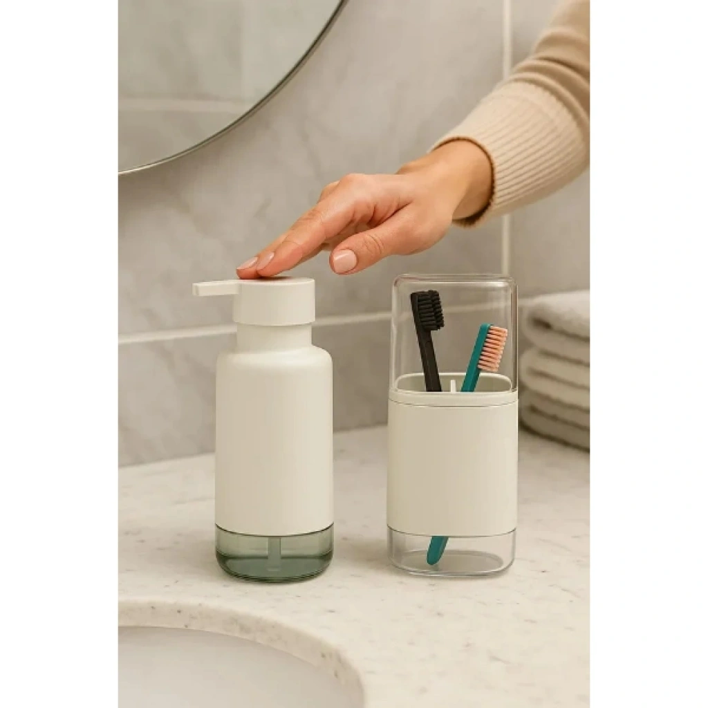 2’li sıvı sabunluk ve diş fırçalık seti, banyonuzda düzen ve şıklığı bir arada sunar. Modern tasarımıyla banyolara estetik bir dokunuş katar. Sabunluk kısmı sıvı sabun, şampuan veya losyon için kullanılabilirken, diş fırçalık bölümü fırçalarınızı hijyenik şekilde muhafaza etmenizi sağlar. Sağlam ve kaliteli malzemeden üretilmiş olup uzun süreli kullanım için uygundur. Pratik yapısı sayesinde temizlik ve kullanım kolaylığı sağlar. Paket İçeriği1 adet sıvı sabunluk1 adet diş fırçalık