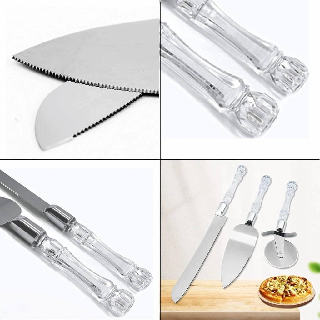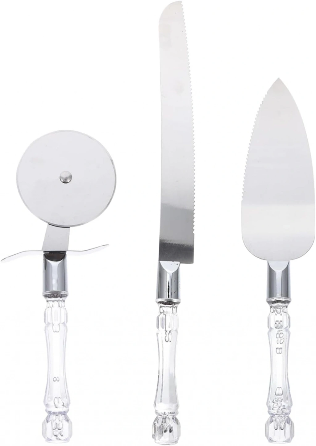 3 Parça Servis Seti, şeffaf sap tasarımı ve paslanmaz metal yüzeyleriyle mutfakta estetik ve fonksiyonel kullanım sunar. Pizza kesme aparatı, uzun servis bıçağı ve geniş spatula içeren bu set; pizza, börek, pasta, kek ve tatlı servislerinde kesim ve sunumu kolaylaştırır. Keskin dişli bıçak pizza dilimlerini dağılmadan kesmenizi sağlarken spatula, dilimleri düzgün şekilde tabağa aktarmanıza yardımcı olur. Yuvarlak pizza kesici ise hamur ve pizza tabanlarında pratik kullanım imkânı sunar. Şeffaf sap detayları sofralarda zarif bir görünüm oluştururken dayanıklı yapısı uzun süreli kullanım sağlar. Günlük mutfak hazırlıklarından özel davet ve organizasyonlara kadar her ortamda kullanıma uygundur ve hijyenik ambalajıyla teslim edilir. Paket İçeriği1 Adet Pizza Kesici1 Adet Dişli Bıçak1 Adet Servis Spatulası