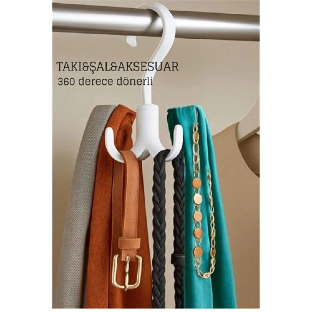 12x6 cm boyutlarında, bu çok amaçlı askı; evinizin gizli kahramanı olmaya aday! 360 derece dönebilen başlığı sayesinde dolap içi, banyo, mutfak gibi alanlarda maksimum erişim ve düzen sağlar. 12 adet kancasıyla kemer, eşarp, fular, takı, havlu, sünger gibi eşyalarınızı tek bir noktada toplar.