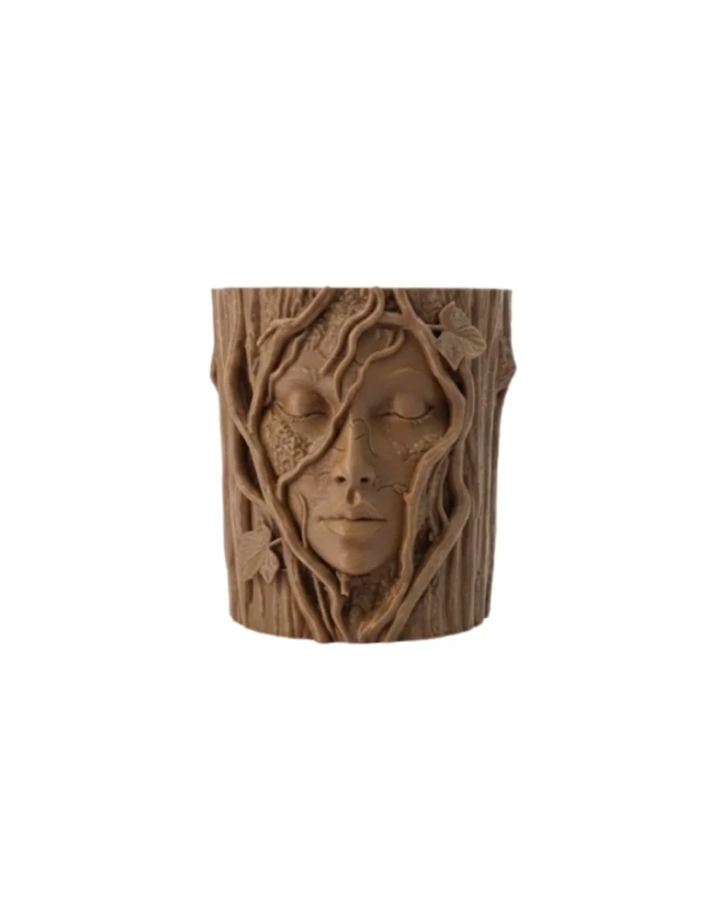 Doğanın zarafetini heykelsi bir formda sunan bu özel tasarım saksı, dekorasyonunuza karakter kazandırmak için tasarlanmıştır. Ağaç dokusu üzerine işlenmiş sakin yüz ifadesi, huzur ve dinginliği simgeler. Sarmaşıkların yüzü sarmalayan detaylı yapısı ürüne masalsı bir hava katmaktadır.Toprak tonlarının sıcaklığı mekâna doğal bir ambiyans sunarken, üç boyutlu kabartmalar premium bir görünüm sağlar. Minimal alanlarda bile güçlü bir dekoratif etki yaratır. Hem ev hem ofis ortamında dikkat çekici bir aksesuar olarak öne çıkar.