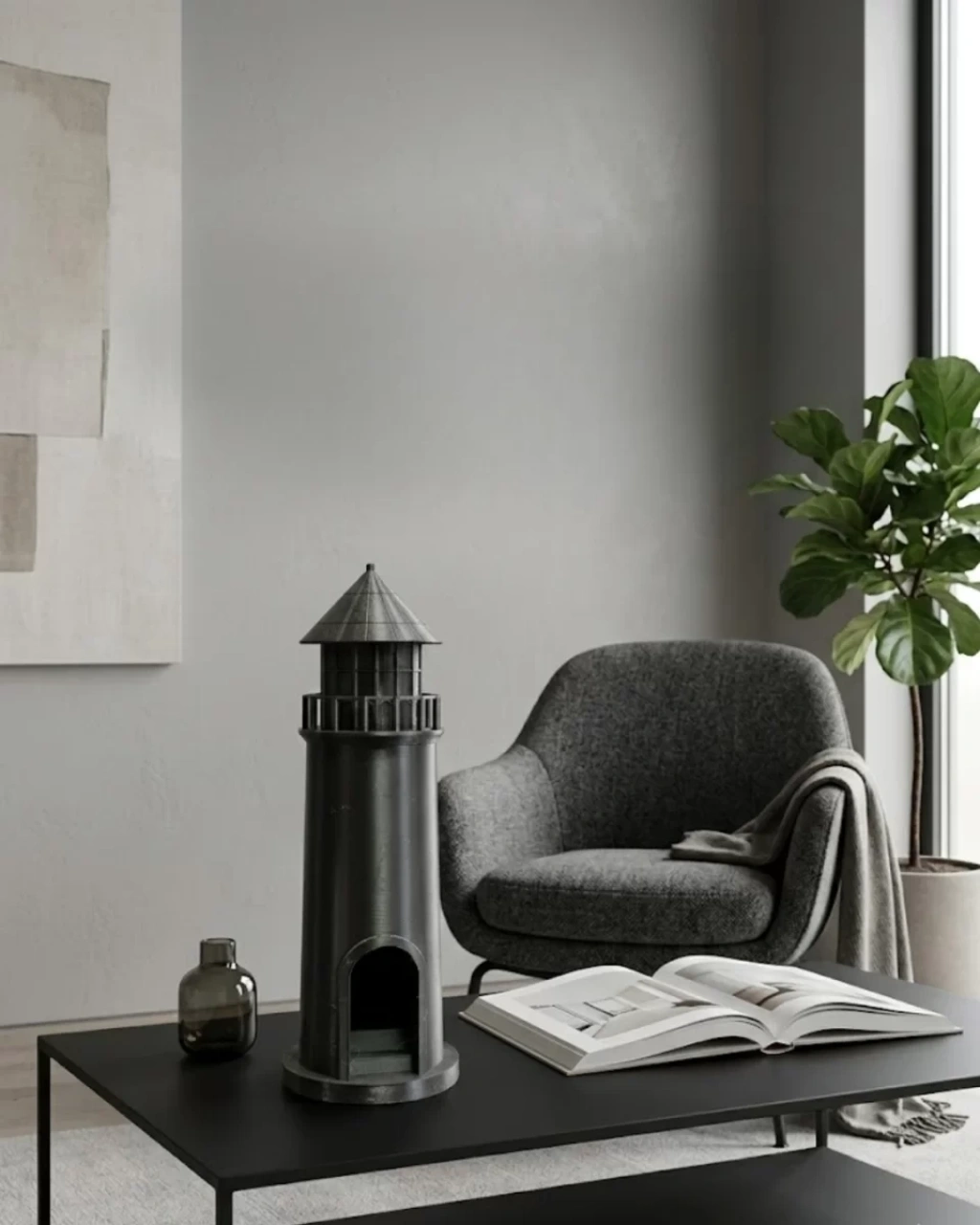Modern ve karakterli bir dekoratif obje arayanlar için tasarlanan 3D siyah deniz feneri, yaşam alanlarına güçlü bir stil kazandırır. Üç boyutlu detaylı tasarımı sayesinde gerçekçi bir görünüm sunar ve bulunduğu ortamda dikkat çekici bir aksesuar haline gelir. Minimal siyah rengi, özellikle modern, endüstriyel ve maskülen dekorasyon stilleriyle mükemmel uyum sağlar.Salon sehpası, TV ünitesi, kitaplık rafı, çalışma masası veya antre dresuarı üzerinde rahatlıkla konumlandırılabilir. Kompakt yapısı sayesinde fazla yer kaplamaz ancak bulunduğu alanda güçlü bir dekoratif etki oluşturur.Dayanıklı malzemeden üretilmiş olup hafif yapısı sayesinde kolay taşınabilir. İç kısmına LED mum veya küçük ışık yerleştirilerek ambiyans aydınlatması olarak da kullanılabilir. Ev dekorasyonu, ofis aksesuarı veya hediyelik dekoratif obje olarak değerlendirebileceğiniz şık ve zamansız bir tasarımdır.