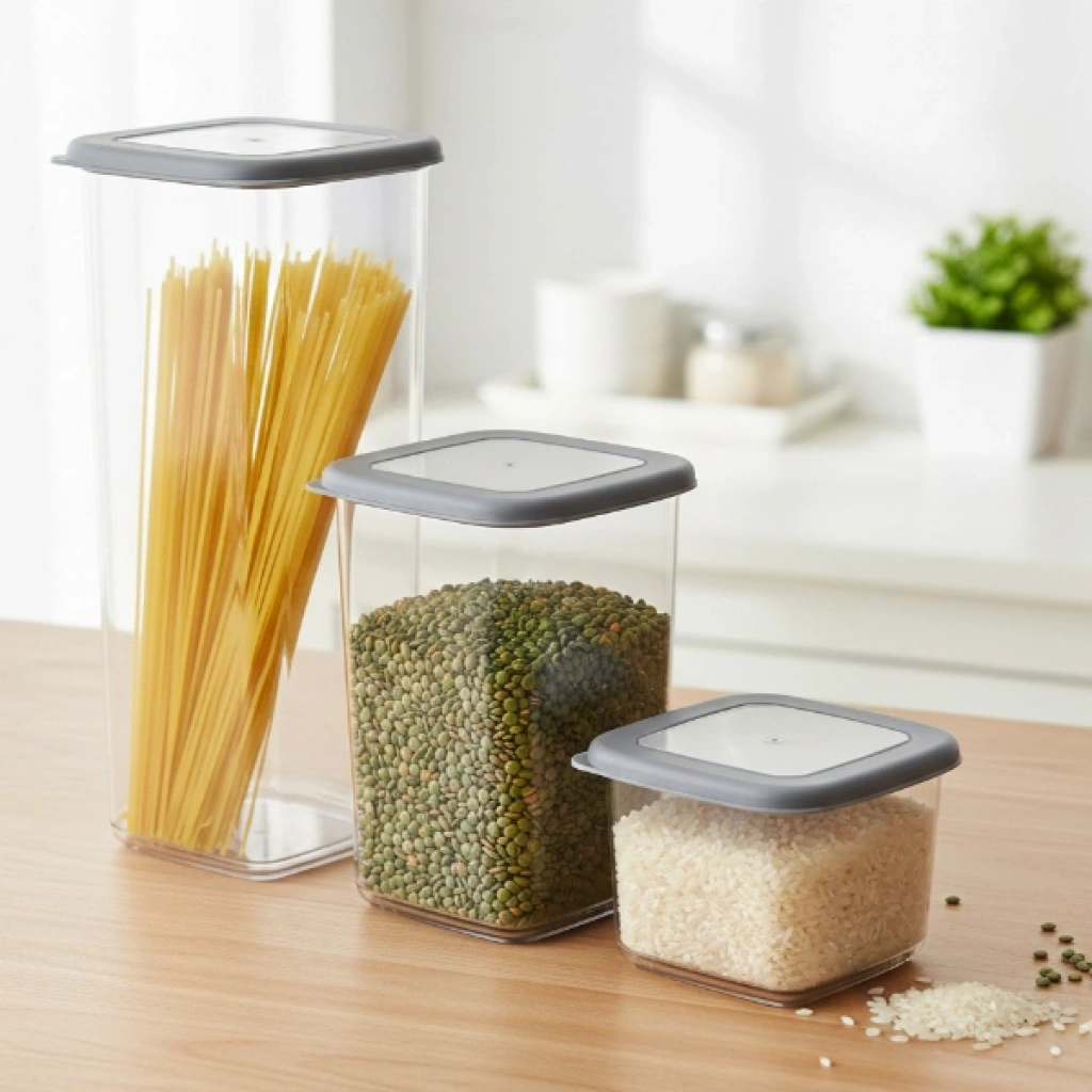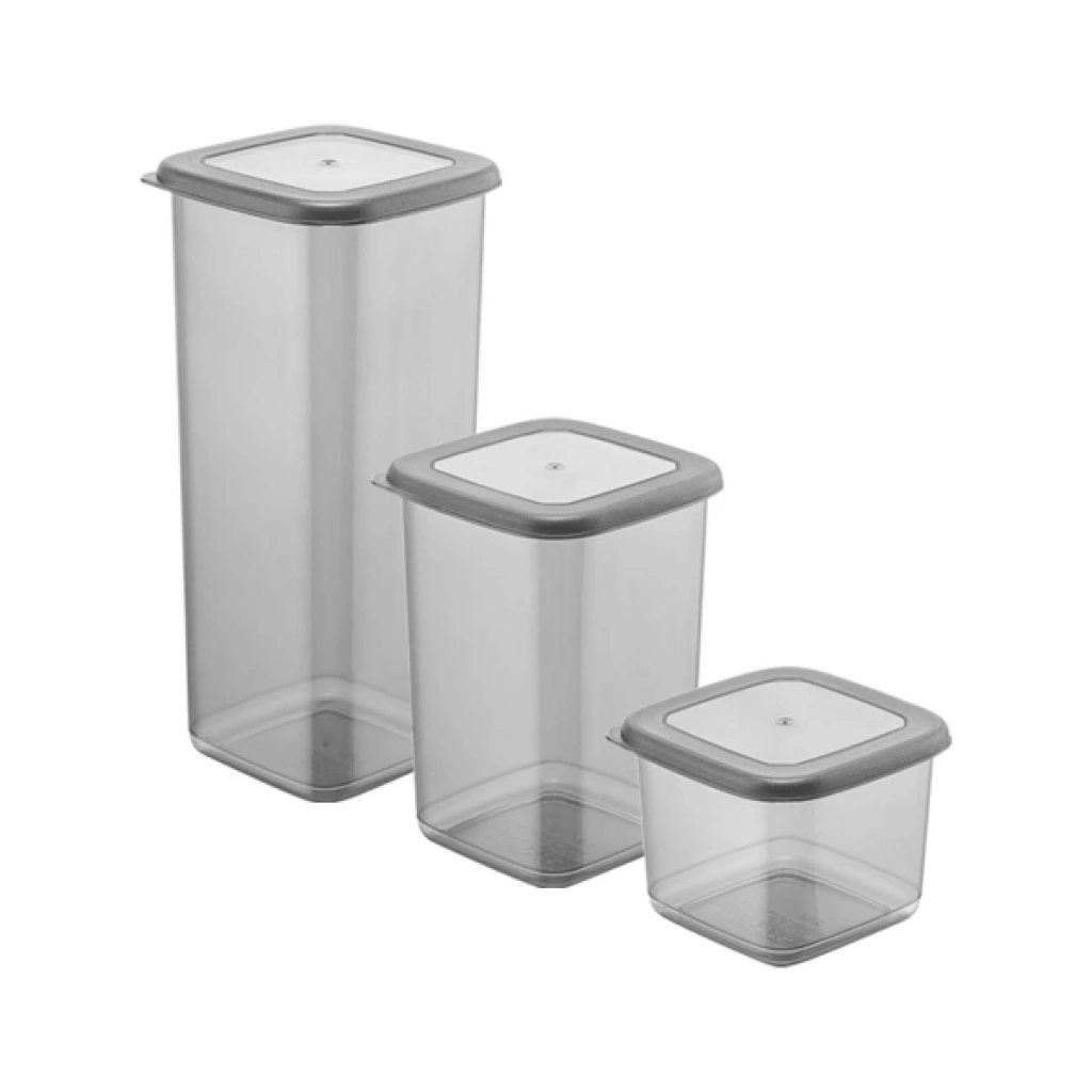 Kare Erzak Seti, mutfakta düzen ve pratik saklama alanı oluşturmak isteyenler için tasarlanmış 3’lü saklama kabı setidir. Farklı yükseklik ve hacim seçeneklerine sahip kaplar sayesinde bakliyat, makarna, kuruyemiş ve benzeri gıdaları düzenli şekilde muhafaza edebilirsiniz. Şeffaf gövde yapısı ile içerisindeki ürünü kolayca görmenizi sağlar ve mutfak dolaplarında estetik bir görünüm sunar. Kare formu sayesinde dolap içinde yer tasarrufu sağlar ve üst üste yerleştirmeye uygundur. Sızdırmaz kapak tasarımı ile gıdaların tazeliğini korumaya yardımcı olan bu kare erzak kabı seti, hem ev hem de ofis mutfakları için ideal bir saklama kabı çözümü sunar. Ürün Teknik Özellikleri Özellik Açıklama Ürün Adı Kare Erzak Seti Adet 3’lü set Ölçü 1 11 x 11 x 8,5 cm Hacim 1 0,55 L Ölçü 2 11 x 11 x 16 cm Hacim 2 1,25 L Ölçü 3 11 x 11 x 24,5 cm Hacim 3 1,75 L Tasarım Kare form, kapaklı saklama kabı Paket İçeriği1 adet 0,55 L erzak kabı (11x11x8,5 cm)1 adet 1,25 L erzak kabı (11x11x16 cm)1 adet 1,75 L erzak kabı (11x11x24,5 cm)