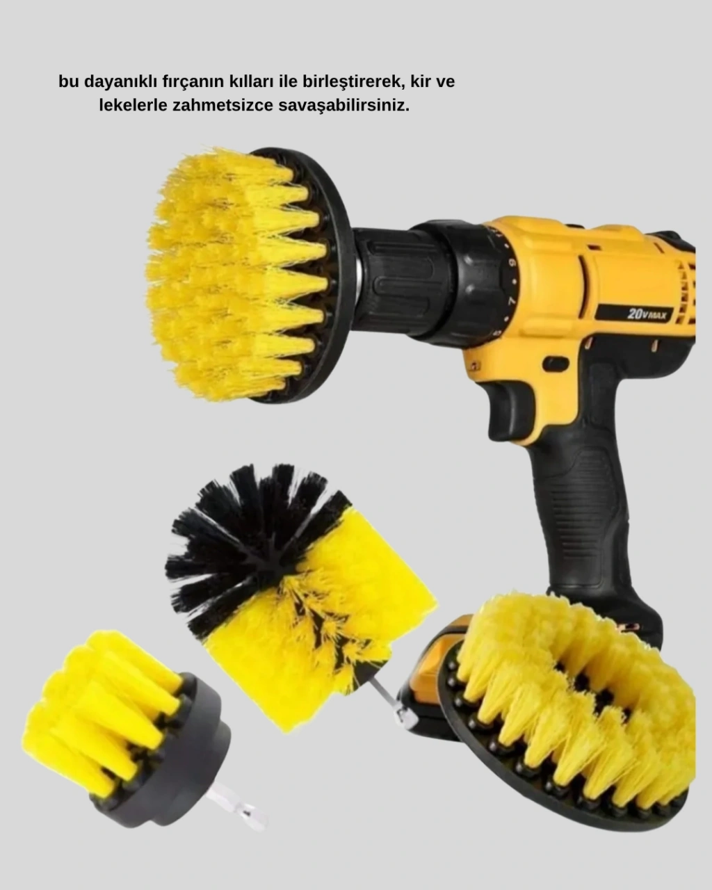 Ev temizliğinde profesyonel sonuçlar almak artık çok daha kolay!Bu 3’lü matkap ucu fırça seti, matkabınızın gücünü etkili bir temizlik performansına dönüştürür.Kablolu veya akülü tüm matkap modelleriyle uyumlu olan set, dar alanlara ve zorlu lekelerin olduğu yüzeylere kolayca ulaşarak derinlemesine temizlik sağlar.Dayanıklı kıllı yapısı, yüzeye zarar vermeden güçlü bir ovalama etkisi sunar.Banyo fayansları, lavabo, küvet, mutfak tezgahı, ocak, fırın, jant, mermer, seramik, halı ve zemin gibi birçok alanda kullanılabilir.Elle yapılan temizliklerde ulaşılması zor bölgeleri kolayca temizlemenizi sağlayarak zaman ve emek tasarrufu sunar.Set içerisinde farklı boyutlarda 3 adet fırça başlığı bulunur:Küçük fırça: köşe ve dar alanlar için idealdir.Orta boy fırça: lavabo, fayans arası ve yüzey temizliği için uygundur.Geniş fırça: zemin, araç jantı ve geniş yüzeylerde yüksek verim sağlar.Yüksek devirde dönen matkap gücü sayesinde, en inatçı kirler bile saniyeler içinde çıkar.Ev temizliğinde, araç bakımında veya dış mekan yüzeylerinde hijyenik bir sonuç elde etmek isteyen herkes için mükemmel bir yardımcıdır.Dayanıklı malzeme yapısı sayesinde uzun süre güvenle kullanılabilir.