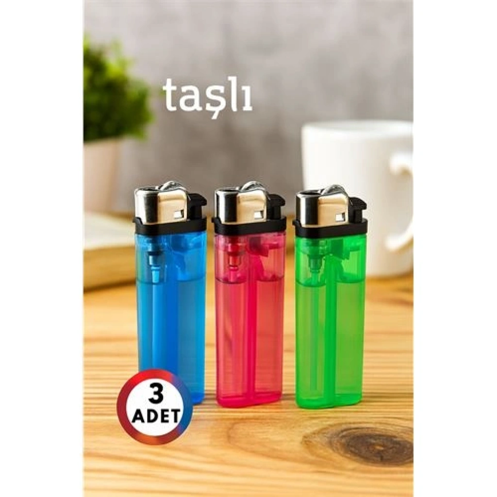 Renkli tasarım, klasik güvenlik! Bu 3’lü taşlı çakmak seti; mavi, pembe ve yeşil renkleriyle hem estetik hem işlevsel bir kullanım sunar.