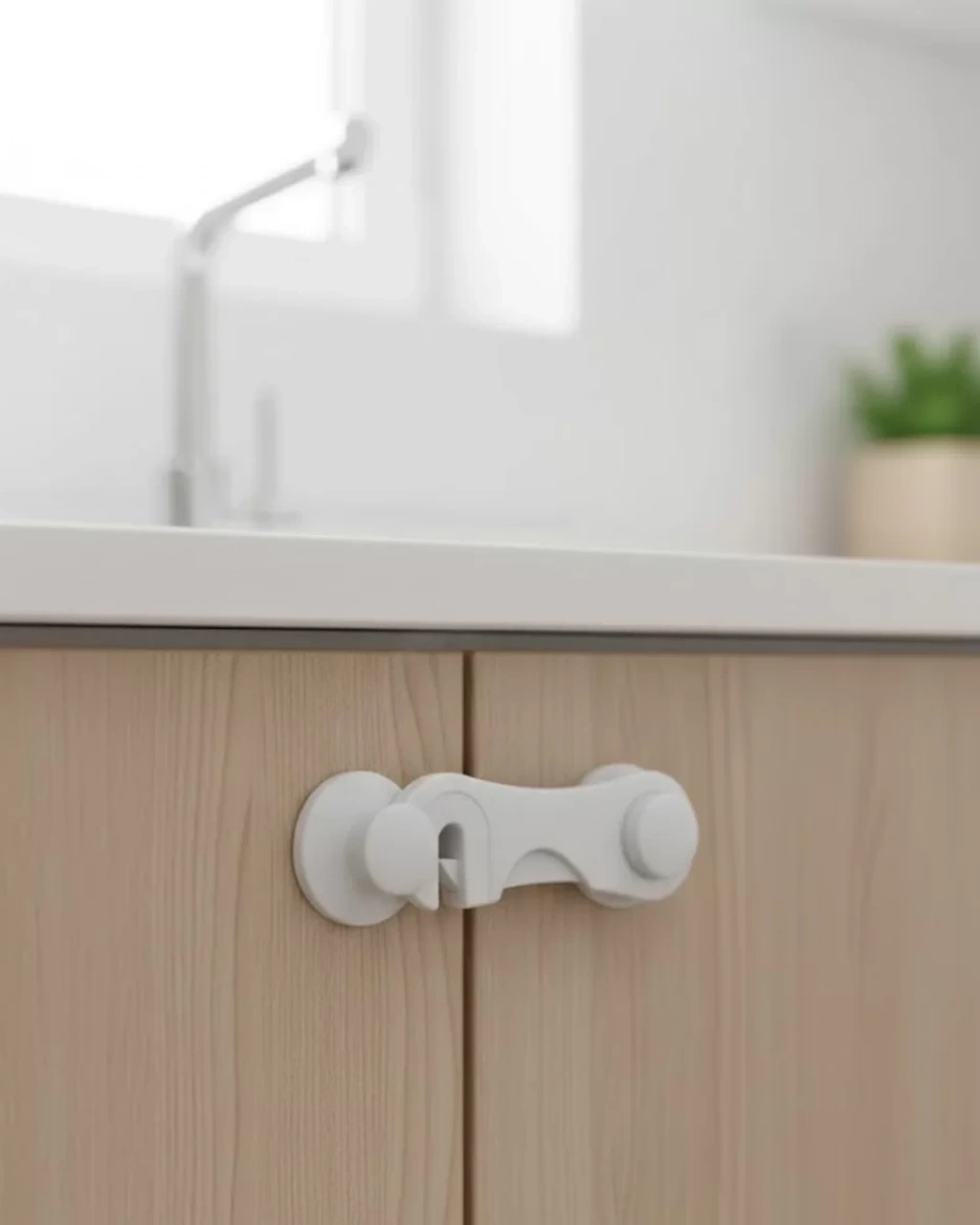 Evdeki meraklı çocuklar için dolap kapakları ciddi bir risk oluşturabilir. 4 adet dolap güvenlik kilidi seti, çocukların dolapları açmasını engelleyerek ebeveynlere güvenli ve huzurlu bir yaşam alanı sunar. Pratik kullanımı sayesinde mutfak, banyo, salon ve yatak odası gibi evin birçok alanında rahatlıkla tercih edilebilir. Ürün, çift taraflı güçlü yapışkan bant sistemi ile tasarlandığı için montaj sırasında vida, matkap ya da herhangi bir alete ihtiyaç duyulmaz. Yüzeyin temizlenmesi yeterlidir; kısa sürede sağlam bir şekilde sabitlenir.Dayanıklı plastik gövdesi sayesinde günlük açma ve kapama işlemlerinde formunu korur. Çocukların çekme ve zorlamalarına karşı dirençli yapısı ile uzun süreli kullanım imkânı sunar. Sade ve beyaz tasarımı, ev dekorasyonuna uyum sağlayarak göze batmaz. Keskin köşe içermeyen yapısı sayesinde çocuklar için güvenlidir.Ahşap, plastik ve metal yüzeylerde rahatlıkla kullanılabilir. İhtiyaç halinde sökülebilir ve yüzeyde iz bırakmaz. Ev içinde güvenliği artırmak isteyen aileler için ideal bir çözümdür.