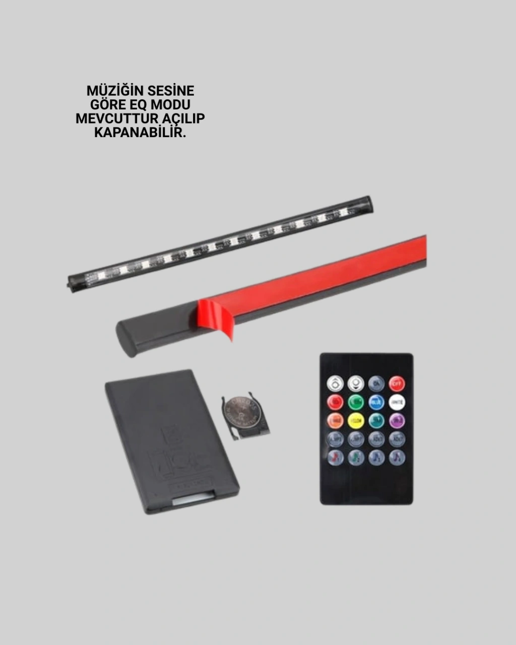 Bu ürün, araç içinde hem görsel şıklık hem de kişiselleştirme sağlayan kullanışlı bir LED aydınlatma sistemidir. Paket, toplam 4 parçadan oluşur. Her LED ünitesinde 12 adet LED boncuğu bulunur ve her biri 13 cm uzunluğundadır. Ürün, 12 volt DC akımla çalışır ve araç çakmaklığına kolayca bağlanabilir. Montajı için çift taraflı bant sistemine sahiptir, böylece vidalama veya delme gerektirmez.Kumandası sayesinde 12 farklı sabit renk ve RGB geçişli ışık efekti arasında kolay geçiş yapılabilir. ON/OFF açma kapama fonksiyonu uzaktan kontrol edilebilir. Kurulumu basit, kullanımı pratiktir.Sistem, LED ışıkların yoğunluğunu ideal düzeyde tutmak için 20mA x 12 değerinde akımla çalışır. Enerji verimliliği ön plandadır. Araç içi aydınlatmayı kişiselleştirmek isteyen sürücüler için ideal bir üründür. Ürün, tüm 12V araçlar ve motosikletlerle uyumludur.