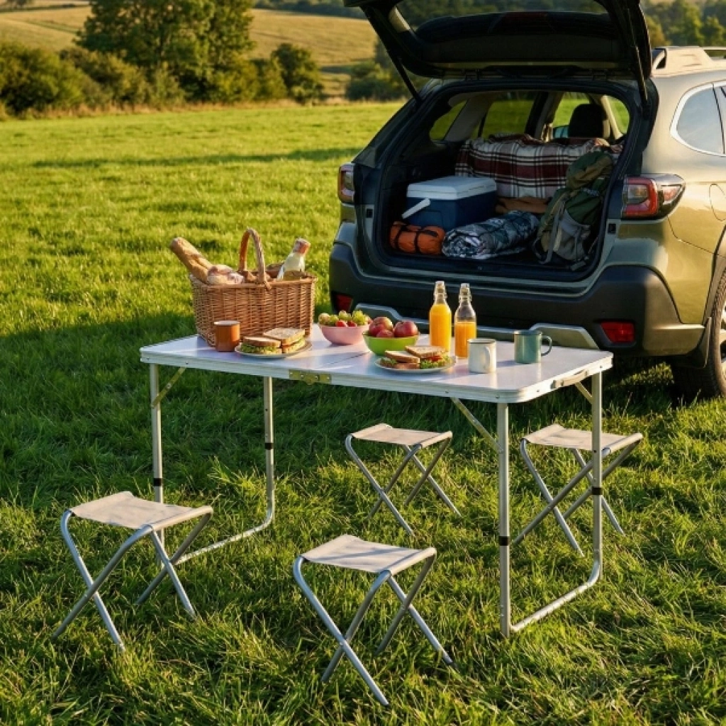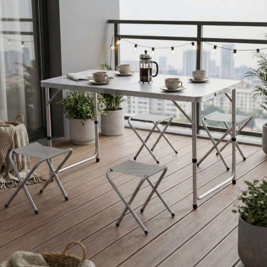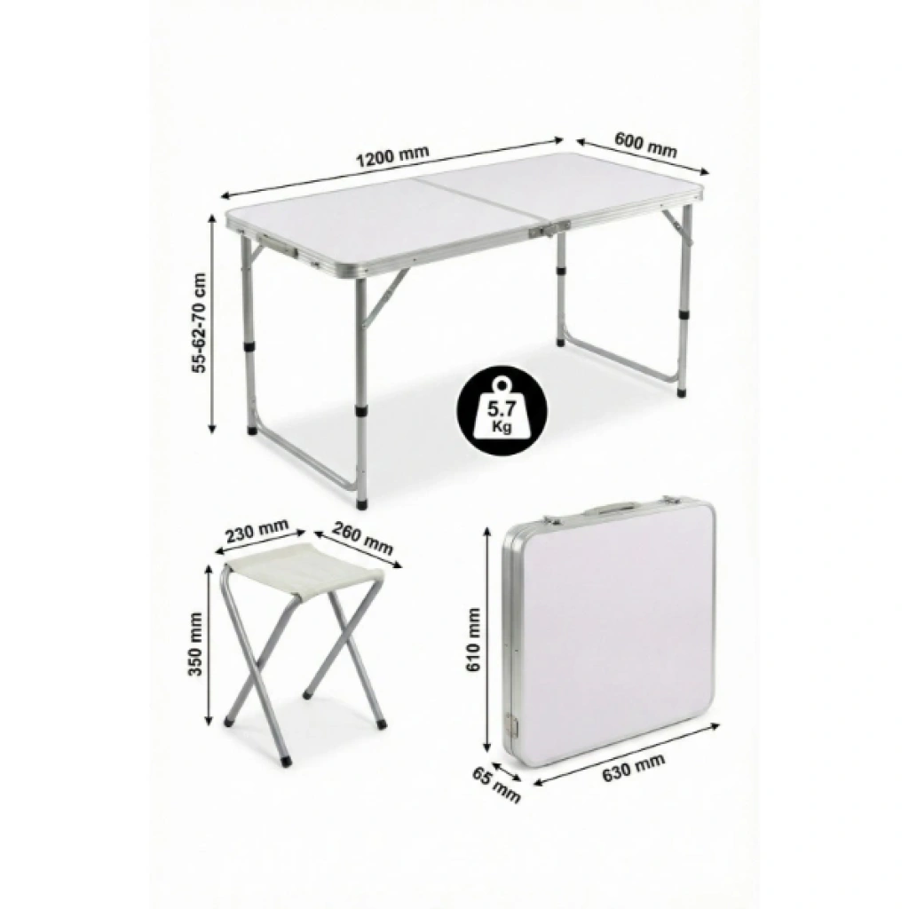 4 Sandalyeli Katlanabilir Masa Seti, doğa tutkunları ve açık hava organizasyonları için tasarlanmış, pratikliği ve konforu bir arada sunan eksiksiz bir çözümdür. Akıllı "çanta tipi" tasarımı sayesinde, 4 adet katlanabilir sandalye masanın içerisine sığar ve set kapandığında şık bir el çantası formunu alır. Hafif alüminyum gövdesi ve sadece 5.7 kg ağırlığı ile elde kolayca taşınabilir, araç bagajlarında minimum yer kaplar. Masanın 55, 62 ve 70 cm olmak üzere 3 kademeli ayarlanabilir yüksekliği, hem çocukların hem de yetişkinlerin kullanımına uygun ergonomik bir deneyim sunar. Dayanıklı üst tabla yüzeyi kolayca silinebilirken, sağlam metal ayaklar engebeli zeminlerde bile denge sağlar. Piknikten kampa, plajdan bahçe partilerine kadar geniş bir kullanım alanına sahip olan bu katlanabilir kamp masası seti, hızlı kurulum mekanizması ile saniyeler içinde kullanıma hazır hale gelir. Uzun ömürlü kumaş yüzeye sahip tabureleri ve paslanmaya dayanıklı iskelet yapısıyla bu set, açık havada geçirdiğiniz her anı çok daha keyifli ve organize bir hale getirir. Ürün Teknik Özellikleri ÖzellikAçıklama Ürün Adı4 Sandalyeli Katlanabilir Kamp Masa Seti Masa Boyutları1200 mm (Boy) x 600 mm (En) Ayarlanabilir Yükseklik55 cm / 62 cm / 70 cm (3 Kademe) Tabure Boyutları350 mm (Yükseklik) x 230 mm x 260 mm Kapalı Çanta Boyutu630 mm x 610 mm x 65 mm Toplam Ağırlık5.7 Kg MalzemeYüksek Kaliteli Alüminyum ve Dayanıklı Kumaş Kullanım AlanıKamp, Piknik, Bahçe, Balkon, Plaj Paket İçeriği1 Adet Katlanabilir Çanta Tipi Masa4 Adet Katlanabilir Metal Tabure