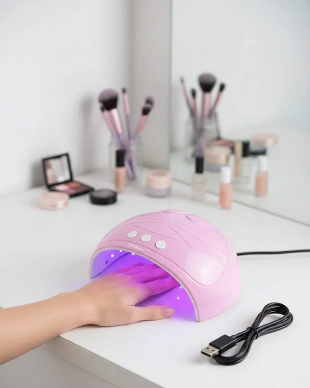 Bu ultraviyole LED oje kurutucu makine, manikür sürecini hızlandırmak ve daha kontrollü sonuçlar elde etmek amacıyla geliştirilmiştir. 15 LED ışık kaynağı sayesinde ojelerin her noktaya eşit şekilde temas etmesini sağlar. 45W gücü ile kısa sürede kuruma sağlayarak zamandan tasarruf edilmesine yardımcı olur. Evde bakım yapmayı seven kullanıcılar için pratik ve güvenilir bir çözümdür.Cihazın yaydığı ultraviyole ışık, görünür dalga boyunda çalışır ve güvenli kullanım hedeflenerek tasarlanmıştır. Elinizi cihazın içine yerleştirip zaman ayarını seçmeniz yeterlidir. 60, 90 ve 120 saniyelik süre seçenekleri sayesinde farklı oje türlerine ve uygulama yoğunluğuna uygun kullanım sunar. Kurutma süresi boyunca ojelerin yüzeyinde dengeli ve pürüzsüz bir görünüm elde edilmesine katkı sağlar.Otomatik kapanma özelliği, elinizi cihazdan çektiğiniz anda ışığın durmasını sağlar. Bu özellik, kullanıcıya konforlu ve güvenli bir deneyim sunar. USB kablo ile çalışması, cihazın kullanım alanını genişletir. USB kablo kutu içeriğinde yer alır ve farklı güç kaynaklarıyla uyumludur. Bu sayede priz bağımlılığı olmadan kullanılabilir.Kompakt yapısı sayesinde kolayca saklanabilir ve taşınabilir. Evde kişisel bakım alanında düzenli kullanım için uygundur. Hem yeni başlayanlar hem de düzenli manikür yapan kullanıcılar için ideal bir yardımcıdır. Oje kuruma süresini kısaltarak daha düzenli ve profesyonel sonuçlar elde edilmesine destek olur.