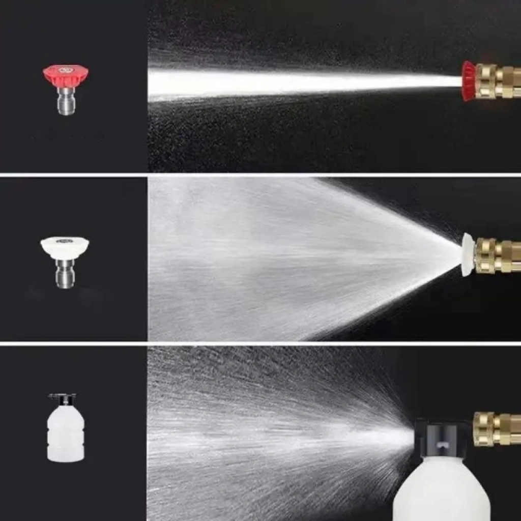 48V şarjlı çift bataryalı taşınabilir basınçlı oto yıkama ve bahçe sulama tabancası, yüksek performanslı motor yapısı sayesinde suyu güçlü basınçla püskürterek detaylı temizlik sağlar. Kompakt ve ergonomik tasarımı ile hem hafif hem de taşıması kolaydır. Batarya ile çalıştığı için elektrik ya da musluk bağlantısı gerektirmez, kova gibi farklı su kaynaklarından hortum aracılığıyla su çekebilir. Köpük aparatı ile deterjanlı temizlik imkânı sunar. Set içerisinde farklı püskürtme başlıkları, köpük şişesi, uzun hortum, su filtresi, şarj adaptörü, bataryalar ve taşıma çantası yer alır. Bahçe sulama, araç, bisiklet, motosiklet temizliği, balkon ve dış cephe yıkama gibi birçok alanda kullanılabilir. Kompakt yapısı ile araç bagajında taşınabilir ve seyahatlerde, kamp alanlarında pratik temizlik çözümü sunar. Maksimum mobilite, yüksek temizlik gücü ve kullanıcı dostu tasarımıyla her evin ihtiyaç duyduğu çok amaçlı temizlik ürünüdür. Paket İçeriği1 Adet 48V Şarjlı Çift Bataryalı Taşınabilir Basınçlı Yıkama Sulama Tabancası