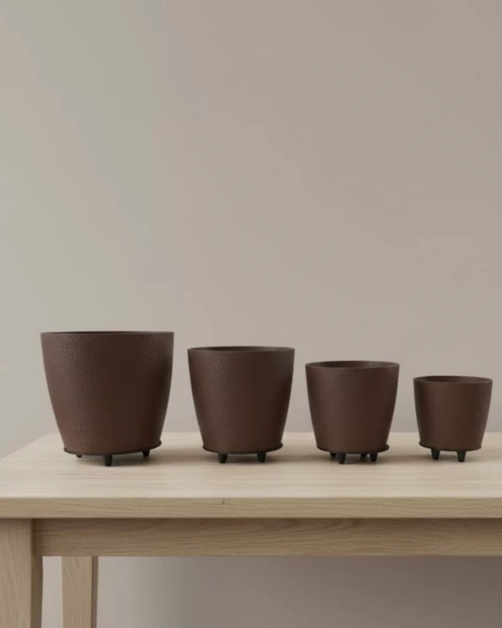 Toprağın sıcak tonlarından ilham alan 4’lü 3D Kahve Tonlu Ayaklı Saksı Seti, dekorasyonunuza doğal bir şıklık kazandırmak için tasarlanmıştır. Zengin kahverengi yüzeyi, bulunduğu ortamda sıcak ve davetkâr bir atmosfer oluşturur. 3D dokulu yüzeyi sayesinde sade bir tasarımın ötesine geçerek göz alıcı bir derinlik sunar.Dört farklı boy seçeneği sayesinde ister birlikte sergileyebilir ister farklı alanlarda uyumlu bir bütünlük oluşturabilirsiniz. Modern ayak detayı ürüne hafiflik ve zarafet kazandırırken siyah kontrast tasarımı daha çarpıcı hale getirir.Salon, mutfak, balkon, ofis ya da teras dekorasyonunda rahatlıkla kullanılabilir. Bitkilerle kombinlendiğinde mekâna doğal bir canlılık kazandırır. Minimalist, modern ve rustik dekorasyon tarzlarıyla mükemmel uyum sağlar.Hem estetik hem dayanıklı yapısıyla uzun yıllar dekorasyonunuza eşlik edecek şık bir settir.