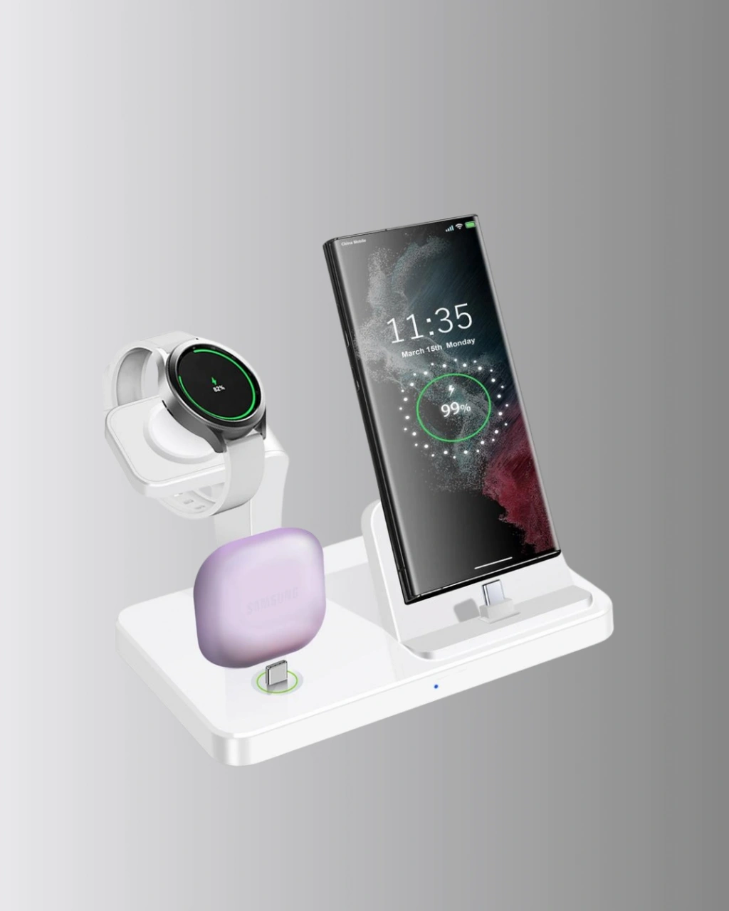 Apple cihazlarınız için tek bir şarj çözümü!4’ü 1 arada Kablosuz Şarj Standı, iPhone, Apple Watch ve AirPods cihazlarını aynı anda güvenle şarj eder.iPhone 8 – iPhone 13 Pro Max dahil olmak üzere kablosuz şarjı destekleyen tüm modellerle uyumludur.Ayrıca, Apple Watch serileri (SE–1) ve AirPods 1, 2, 3, Pro modelleriyle tam entegre çalışır.Klasik kablo dağınıklığını ortadan kaldıran bu tasarım, tek priz üzerinden dört cihazı besler.Her cihaza özel yerleştirme noktası, cihazların karışmasını önler.Kaymaz taban ve stabil şarj yüzeyi, cihazlarınızın güvenle sabitlenmesini sağlar.Aşırı voltaj, kısa devre ve aşırı ısınmaya karşı koruma sağlayan akıllı şarj çipi, güvenli bir şarj deneyimi sunar.Modern tasarımı, masaüstü veya komodin üzerinde mükemmel bir görünüm yaratır.Hem işlevsel hem estetik bir şarj çözümü arayan Apple kullanıcıları için ideal!