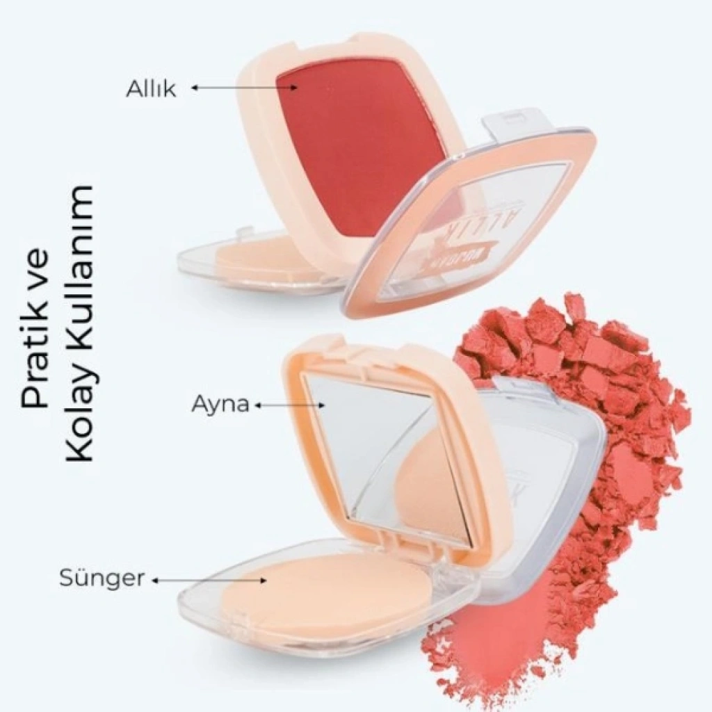 4’lü aynalı allık seti, makyaj rutininde pratiklik ve renk çeşitliliğini bir arada isteyenler için hazırlanmıştır. Set içerisinde yer alan 4 farklı ton, günlük makyajdan daha belirgin uygulamalara kadar farklı stiller oluşturmayı kolaylaştırır. Tonlar arasında geçiş yapabilme imkânı, makyaj görünümünü ortama ve tercihe göre uyarlamayı sağlar. Her bir allığın içerisinde bulunan ayna ve sünger, makyajı dışarıda, seyahatte veya gün içinde tazelemek isteyen kullanıcılar için kullanım kolaylığı sunar. Kompakt yapısı sayesinde çantada taşımaya uygun olan bu set, renk çeşitliliği ve pratik kullanım detaylarıyla makyaj çantasında düzenli ve işlevsel bir alan oluşturur. Ürün Teknik Özellikleri Özellik Açıklama Ürün Adı 4'lü Aynalı Allık Seti Set İçeriği 4 adet allık Renk Sayısı 4 farklı ton Ek Özellikler Ayna ve sünger Kullanım Pratik ve taşınabilir yapı Paket İçeriği4 adet aynalı allık