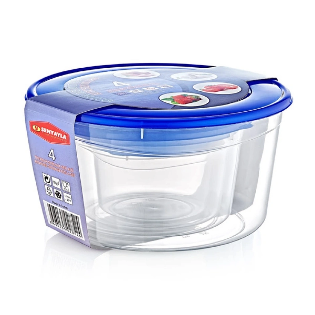 Mutfakta gıdalarınızı düzenli, hijyenik ve taze bir şekilde saklamak için tasarlanan 4’lü Derin Saklama Kabı Seti, farklı boyutları sayesinde hem sıvı hem de katı gıdalar için çok yönlü kullanım imkânı sunar. Şeffaf gövdesiyle içerisindeki yiyecekleri kolayca görebilirsiniz.Her kap, hava geçirmez ve sızdırmaz mavi kapağı sayesinde gıdaların tazeliğini korur. BPA içermeyen, dayanıklı plastikten üretilmiş olup gıda ile temasa uygundur. Set, salata, çorba, kahvaltılık, kuruyemiş veya yemek saklamak için idealdir. Ayrıca iç içe geçebilen yapısı sayesinde dolaplarda yer tasarrufu sağlar.Uzun ömürlü yapısı ve pratik kapak tasarımıyla buzdolabında, mutfak dolaplarında veya pikniklerde güvenle kullanılabilir. Paket İçeriği1 adet 4'lü Derin Saklama Kabı Seti
