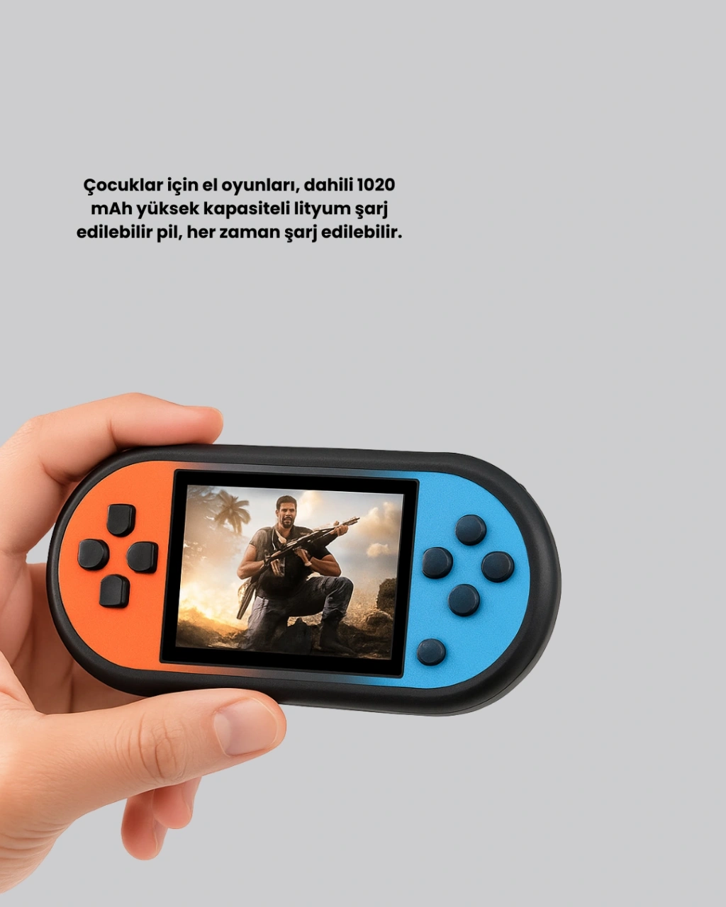 520 oyuna sahip taşınabilir el konsolu, geçmişin efsane oyunlarını günümüz teknolojisiyle buluşturan kompakt bir oyun cihazıdır. HD LCD ekranı, oyunları yüksek çözünürlük ve netlikte sunarak nostalji dolu bir deneyim yaşatır. Piksel görüntüsü bozulmadan, renkler canlılığını koruyarak aktarılır. Bu sayede ister çocuk olun ister yetişkin, cihaz size kaliteli ve sorunsuz bir oyun keyfi sunar. Konsolun içinde yer alan 520 farklı oyun, arcade oyunlarından zeka oyunlarına, macera türünden klasik platform oyunlarına kadar geniş bir seçenek havuzu barındırır.Cihaz, AV çıkış kablosu sayesinde televizyona bağlanabilir. Böylece küçük ekran deneyimini büyük ekrana taşıyabilir, ailecek veya arkadaşlarla birlikte retro yarışmalar düzenleyebilirsiniz. Cihazın USB şarj özelliği, taşınabilirliği artırır ve gün içinde yeniden kolayca şarj etme fırsatı sunar. Pil ömrü, uzun süreli oynayışa uygundur ve düşük enerji tüketimi sayesinde beklenenden daha uzun kullanım sağlar. Hafif gövde yapısı sayesinde çocukların tek elle bile rahatça kontrol edebileceği bir tasarıma sahiptir.Yolculuklarda sıkılmayı önleyen bu konsol, otobüs, uçak, tren veya araba yolculuklarında harika bir eğlence alternatifidir. Aynı zamanda hediye olarak da oldukça popülerdir. Çocukların motor becerilerini destekleyen, el-göz koordinasyonunu geliştiren ve hafızayı güçlendiren oyunlarla doludur. Yetişkinler içinse geçmişe dönme fırsatı, nostaljik bir kaçış alanı sunar. Kompakt boyutu, güçlü ekranı ve kolay taşınabilir yapısıyla günlük yaşamda her an yanınızda olacak bir arkadaştır.