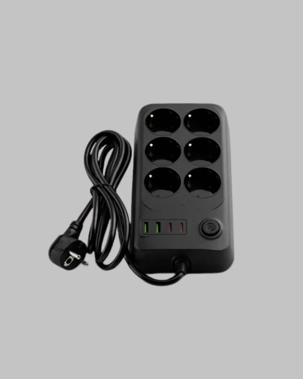 6’lı çok amaçlı uzatma prizi, termal akım koruma sistemi ile donatılarak yüksek güvenlik standartlarına uygun hale getirilmiştir. 2500W güç kapasitesi ile güçlü elektronik cihazları destekler. USB ve Type-C hızlı şarj çıkışları günlük yaşamda pratik kullanım sağlar. 10A koruma ünitesi cihazları elektriksel risklerden korur. Dayanıklı gövde yapısı ve uzun kablosu ile her ortamda kolay konumlandırılır.