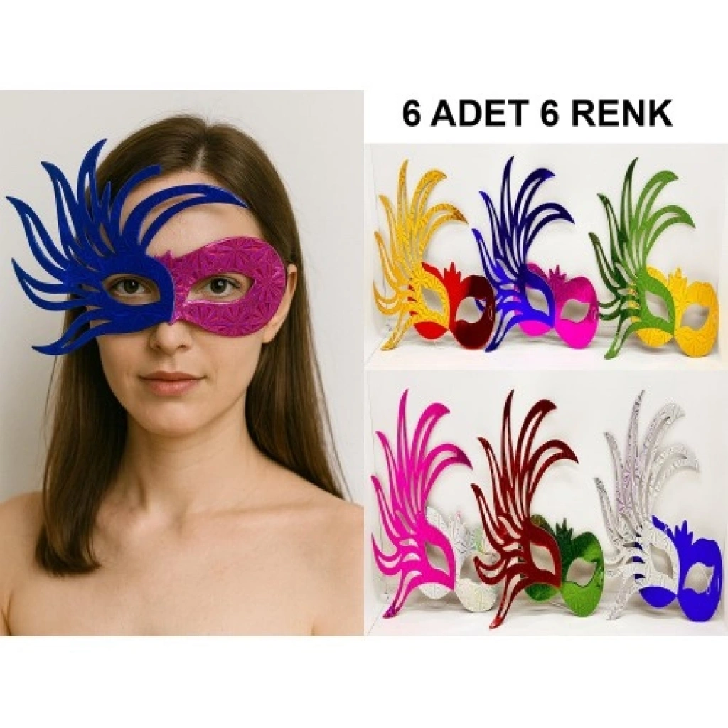 ve Avantajları6 Canlı Renk Seçeneği: Paket içerisinde her biri farklı renkte (Karışık/Multicolor) 6 adet maske bulunur. Arkadaş grubunuz veya ailenizle her biriniz farklı bir renge bürünebilirsiniz.Hafif ve Konforlu Yapı: Yüksek kaliteli parlak karton malzemeden üretilmiştir. Hafifliği sayesinde yüzünüzde ağırlık yapmaz, uzun süreli eğlencelerde rahatlık sunar.Esnek Lastikli Tasarım: Arkasındaki dayanıklı ve esnek lastik bant, maskenin yüze tam oturmasını sağlar. Kayma yapmaz ve her kafa yapısına uyum gösterir.Yetişkin ve Çocuk Uyumu: Standart ölçüleri sayesinde hem miniklerin okul partilerinde hem de yetişkinlerin kostüm balolarında güvenle kullanılabilir.Ekonomik ve Pratik: Tek bir pakette 6 kişilik eğlence sunan bu set, toplu etkinlikler için bütçe dostu ve etkileyici bir dekorasyon çözümüdür.Kullanım AlanlarıDoğum Günü Partileri: Çocukların ve davetlilerin birbirini rengarenk maskelerle karşıladığı eğlenceli bir konsept yaratın.Okul Gösterileri ve Müsamereler: Yıl sonu gösterilerinde veya tiyatro çalışmalarında karakterleri belirginleştirmek için idealdir.Fotoğraf Köşeleri (Photobooth): Davetlilerin en komik ve en şık pozları vermesini sağlayacak harika bir çekim aksesuarıdır.Karnavallar ve Yılbaşı: Gecenin enerjisini yükselten, her türlü kostümle uyumlu tamamlayıcı bir parça.Venedik Temalı Davetler: Maskeli balo konseptini en uygun fiyatlı ve şık şekilde hayata geçirin.