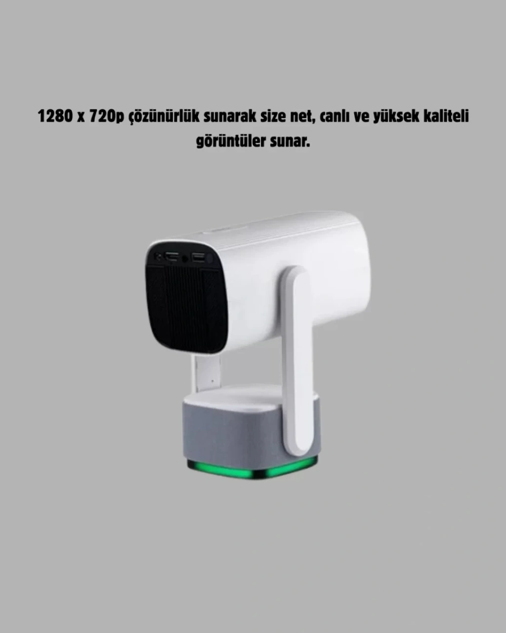 Bu HD projeksiyon cihazı, evde sinema deneyimini kusursuz hale getirmek için tasarlandı. 1280 x 720p çözünürlük desteği sayesinde net, canlı ve gerçek renk tonlarıyla her ayrıntıyı mükemmel şekilde görüntüler. Film, maç ya da oyun fark etmeden, her kullanımda yüksek kalitede görüntü keyfi yaşarsınız.Geniş yansıtma alanı, görüntüyü büyük ekrana taşırken sinema salonu atmosferi yaratır. 10.000 saatlik ampul ömrü sayesinde uzun süreli kullanım sağlar; böylece sık sık ampul değiştirme derdine son verirsiniz. Enerji tasarrufu sağlayan bu teknoloji, hem çevre dostu hem de ekonomiktir.Yüksek kontrast oranı ve keskin görüntü işleme teknolojisi sayesinde karanlık sahnelerde bile detayları kaybetmeden izleme keyfi yaşarsınız. USB ve AV girişleri sayesinde bilgisayar, telefon, tablet veya oyun konsollarıyla tam uyum sağlar.Kompakt ve şık tasarımıyla her ortamda kolayca konumlandırılabilir. Evde film geceleri, çocuklar için çizgi film keyfi veya oyun maratonları için idealdir.Yüksek çözünürlük, uzun ömür ve enerji verimliliğini bir araya getiren bu projeksiyon cihazı, her evin vazgeçilmez eğlence ekipmanıdır.
