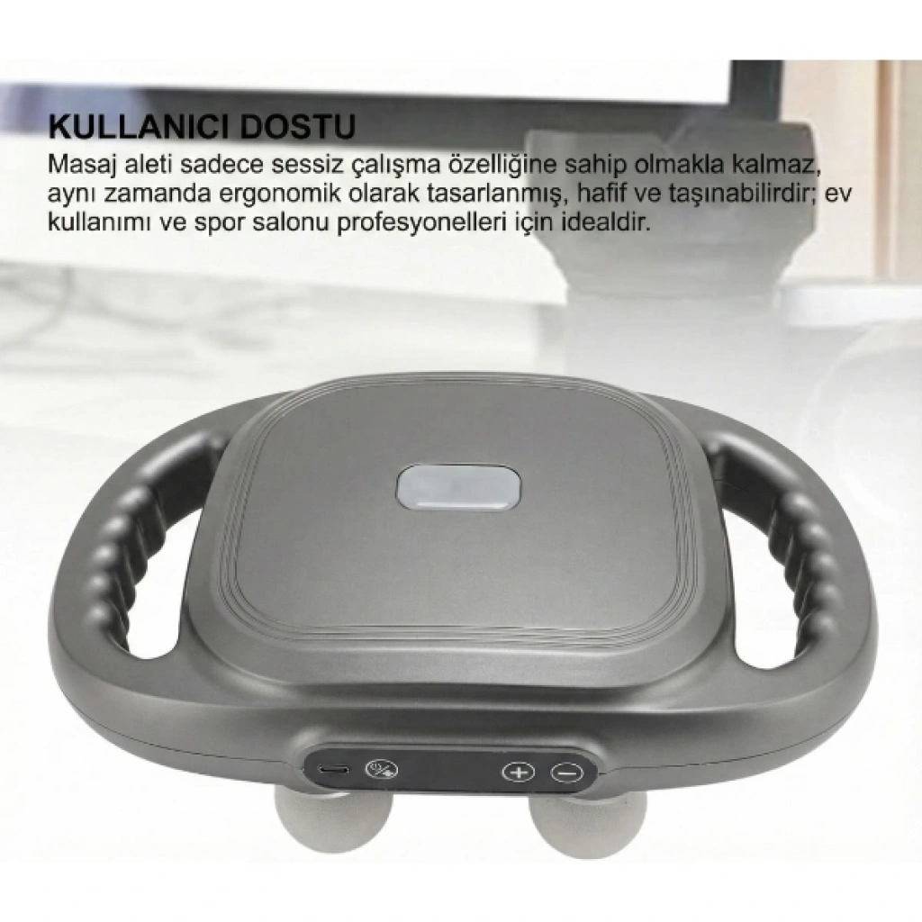 8 başlıklı şarjlı ısıtmalı masaj aleti, gün içinde oluşan kas gerginliğini azaltmaya ve rahatlama hissini artırmaya yardımcı olmak üzere tasarlanmıştır. Boyun, sırt, omuz, bel, bacak ve ayak gibi farklı bölgelerde kullanılabilen değiştirilebilir başlıkları sayesinde hedefli masaj imkânı sunar. Sıcaklık desteği, masaj etkisini güçlendirerek kasların gevşemesine katkı sağlar ve özellikle yoğun geçen günlerin ardından konforlu bir kullanım deneyimi sunar. Güçlü motoru ve ayarlanabilir hız/şiddet kademeleri ile masaj yoğunluğunu kişisel ihtiyaca göre ayarlama olanağı verir. Şarjlı bataryası sayesinde kablo derdi olmadan evde, ofiste ya da dilediğiniz her yerde pratik şekilde kullanılabilir. Ergonomik ve kompakt gövdesi, kaymaz tutuş yüzeyi ve dengeli ağırlık dağılımı ile uzun süreli kullanımlarda bile konfor sağlar. Sessiz çalışma yapısı, günün her saatinde rahatsızlık vermeden kullanım imkânı sunar. Antrenman sonrası sporcular, aktif yaşam sürenler ve masa başında uzun süre oturanlar için günlük bakım rutinine kolayca entegre edilebilecek fonksiyonel bir masaj çözümüdür.Bu ürün bir sağlık cihazı değildir; tıbbi teşhis veya tedavinin yerine geçmez. Hamilelik, kalp pili, açık yara gibi durumlarda kullanmadan önce doktorunuza danışmanız önerilir. Paket İçeriği1 adet 8 Başlıklı Şarjlı Isıtmalı Masaj Aleti