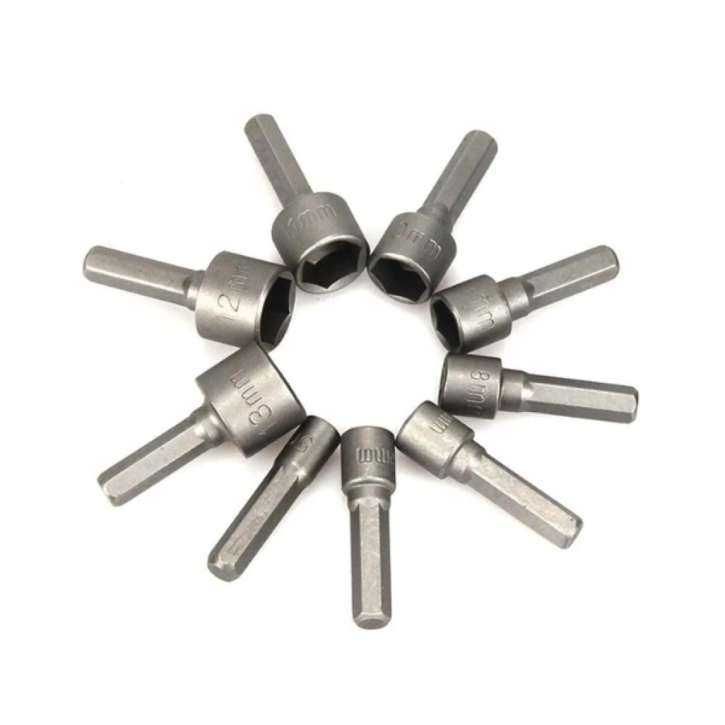 9 parçadan oluşan manyetik somun adaptörü seti, 5 mm’den 13 mm’ye kadar farklı ölçülerde adaptörler içermektedir. Manyetik tasarımı sayesinde somunları yerinde tutarak kolay ve hızlı kullanım sağlar. Titanyum kaplama sayesinde aşınmaya karşı dayanıklı olup, uzun ömürlü kullanım sunar. Standart altıgen şaft yapısıyla çoğu matkap ve vidalama cihazıyla uyumlu olarak çalışır. Ahşap, metal ve plastik yüzeylerde sıkma işlemlerini pratik hale getiren bu set, tamir ve montaj işlemleri için ideal bir yardımcıdır. Özellikle inşaat, marangozluk ve otomotiv sektörlerinde sıkça tercih edilmektedir.Paket İçeriği1 Adet 9 Parçalı Manyetik Somun Adaptörü Seti