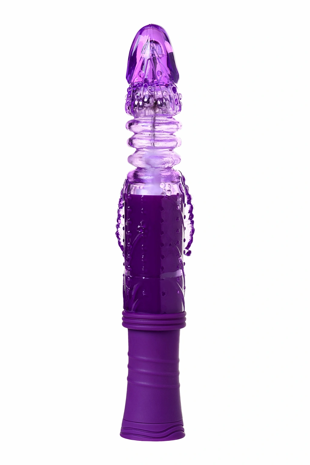 High-Tech namlu döndürme özelliğine ve güçlü klitoral uyarıcıya sahip A-Toys vibratörler. 8 titreşim ve rotasyon modunun yanı sıra hızı oyuncağın sapındaki düğmelerle rahatça kontrol edilen ileri-geri hareketlere sahiptir. Vibratörler yüksek kaliteli, kullanımı kolay, toksik olmayan, hipoalerjenik, gözeneksiz TPR malzemeden yapılmıştır. Güçlü vantuz, vibratörü herhangi bir dikey veya yatay pürüzsüz yüzeye sabitlemenizi sağlar. Cihazın gövdesine, heyecan verici etkiyi art arda arttıran birkaç sıra metal top yerleştirilir. A-Toys vibratörleri unutulmaz bir zevk sunmak için üretilmiştir!vibratör uzunluğu 12 cm'dir.