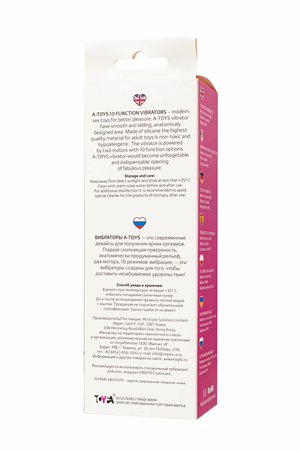 Şaşırtıcı derecede basit ve kullanımı kolay bir vibratör, herhangi bir cinsel oyunda erişilebilir ve vazgeçilmez bir oyuncak haline gelecektir. Pürüzsüz eğriler, genişlemiş bir vibratör kafası oyuncağı hareket ettirirken zevkleri keskinleştirecek, hafifçe sivri uçlu, yana doğru çevrilmiş ucu, bazı alanları, özellikle de G noktasını uyarmakta yardımcı olacaktır. 10 titreşim seviyesi sayesinde inanılmaz derecede farklı ve canlı bir duyum yelpazesi yaşayabilirsiniz. Model, sonsuza dek dokunmak istediğiniz çok hassas ve kadifemsi silikondan yapılmıştır. Zevk sadece iki düğme ile kontrol edilir. Çalışma uzunluğu 11.8 cm'dir.