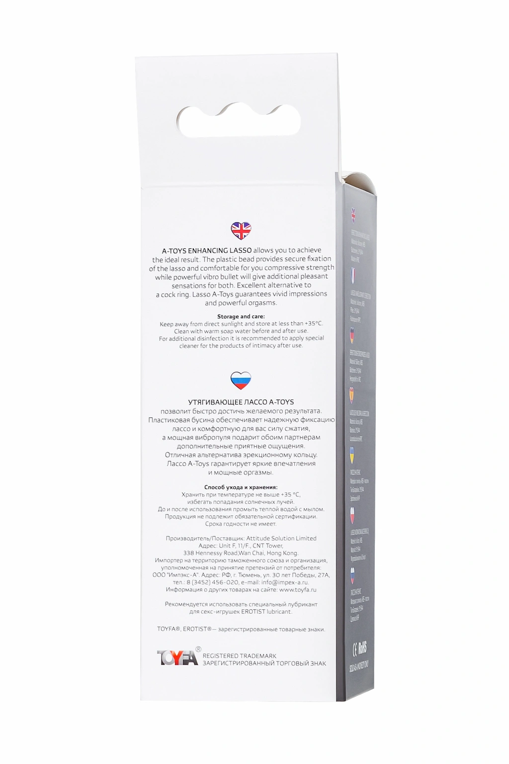 A-Toys'un Penis kementleri istenen sonuca hızlı bir şekilde ulaşmanızı sağlayacaktır. Plastik boncuk, kementin güvenli bir şekilde sabitlenmesini ve sizin için rahat bir sıkıştırma kuvveti sağlar ve güçlü bir titreşim çubuğu her iki Partnere de ekstra hoş bir his verir. Montaj halkasına mükemmel bir alternatif. A-Toys kement, canlı izlenimleri ve güçlü orgazmları garanti eder. Toplam uzunluk: 14 cm 1 titreşim modu Çıkarılabilir titreşim çubuğu