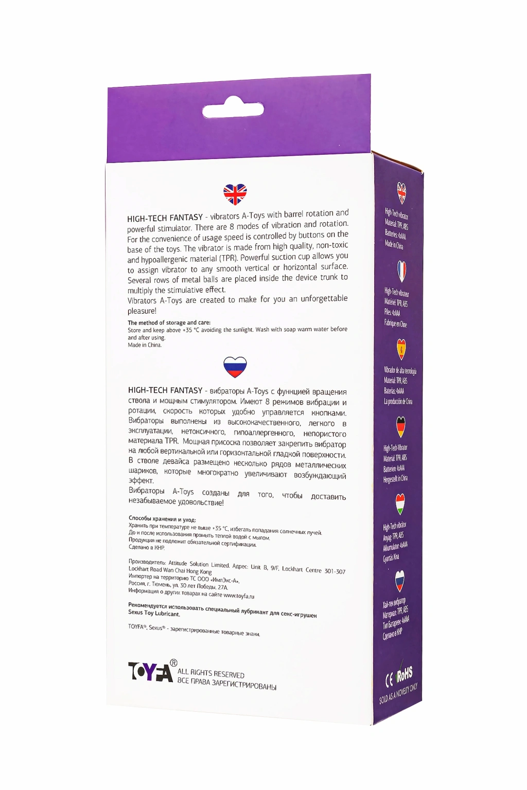 High-Tech namlu döndürme özelliğine ve güçlü klitoral uyarıcıya sahip A-Toys vibratörler. 8 titreşim ve rotasyon modunun yanı sıra hızı oyuncağın sapındaki düğmelerle rahatça kontrol edilen ileri-geri hareketlere sahiptir. Vibratörler yüksek kaliteli, kullanımı kolay, toksik olmayan, hipoalerjenik, gözeneksiz TPR malzemeden yapılmıştır. Güçlü vantuz, vibratörü herhangi bir dikey veya yatay pürüzsüz yüzeye sabitlemenizi sağlar. Cihazın gövdesine, heyecan verici etkiyi art arda arttıran birkaç sıra metal top yerleştirilir. A-Toys vibratörleri unutulmaz bir zevk sunmak için üretilmiştir!Vibratör uzunluğu 14,5 cm'dir.