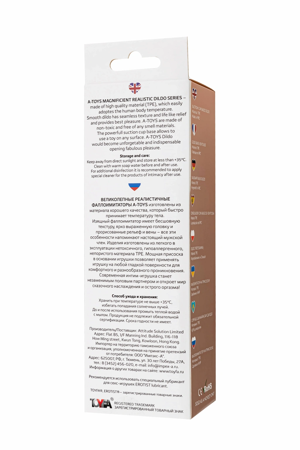 MUHTEŞEM GERÇEKÇİ A-TOYS Krip Dildo , vücut ısısını hızla alan kaliteli malzemeden üretilmiştir. Zarif Realistik Dildo kusursuz bir dokuya, belirgin bir kafaya ve çizilmiş kabartmalı damarlara sahiptir - tüm bu özellikler gerçek bir erkek penisine benzemektedir. Ve oyuncağın tabanındaki güçlü bir vantuz, oyuncağın rahat ve çeşitli penetrasyon için herhangi bir düz yüzeye uygulanmasını sağlar. Modern seks oyuncağı vazgeçilmez bir cinsel partner olacak ve muhteşem bir zevk ve akut orgazm dünyasını açacak! ÖNEMLİ ÖZELLİK: Ürünün güvenli olması için onu yüzeyden kuvvetle çıkarmamanız, vantuzun kenarından dikkatlice çıkarmanız önerilir. Çalışma uzunluğu 17 cm'dir.