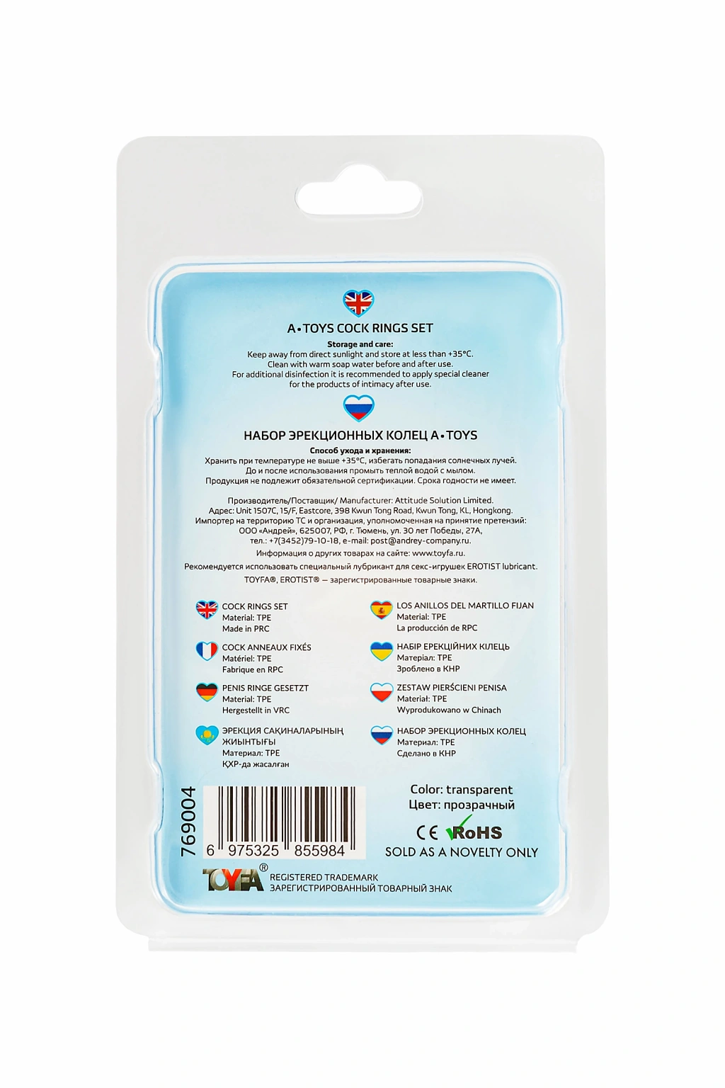 VipMarketim A-toys Penis Halka Seti, Silikon, Şeffaf, Ø 3,5/3/2 Cm