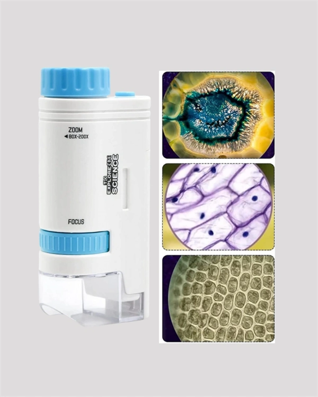 Piyasadaki çoğu çocuk mikroskobunun aksine, bu el mikroskopu 80X ile 200X arasında gerçek büyütme sunarak gözle görünmeyen detayları net bir şekilde incelemenizi sağlar. Yüksek kaliteli asferik PMMA optik lens, ışık geçirgenliğini artırarak daha canlı ve gerçekçi görüntüler sunar. LED ışık sayesinde karanlıkta bile kusursuz bir gözlem deneyimi elde edilir. Mikroskop 2 adet AAA pil ile çalışır (piller pakete dahil değildir) ve ergonomik tasarımıyla özellikle çocukların kolayca kavrayıp kullanabileceği şekilde üretilmiştir. Mikroskopla birlikte gelen basit kullanım talimatları, her yaş grubundan bireyin rahatlıkla gözlem yapmasını sağlar. İster doğada, ister sınıfta ya da evde olun, bu mikroskop bilimsel keşfi her an mümkün kılar.