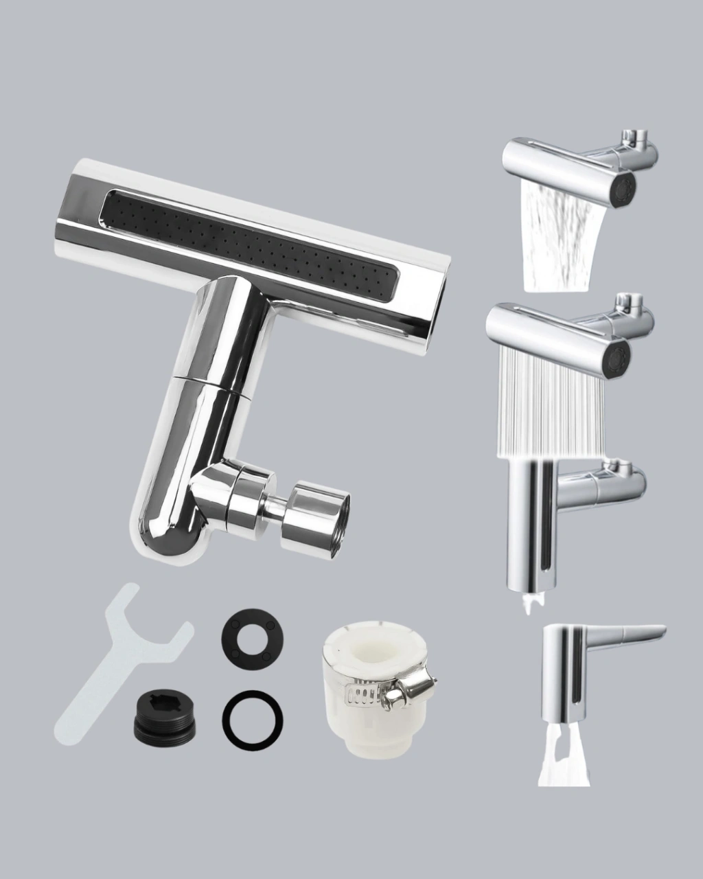 Fonksiyonelliği ve dayanıklılığı bir araya getiren ABS + Pirinç Alaşımlı Musluk Başlığı, modern evlerin vazgeçilmez yardımcılarından biri.4 farklı su çıkış modu (yağmur, şelale, sprey, kabarcık) ile ihtiyacınıza göre su akışını ayarlayabilir, suyu verimli kullanarak tasarruf sağlayabilirsiniz.360° dönebilen yapısı, lavabonun tüm bölgelerine kolay erişim sunar.Bu özellik özellikle geniş lavabolarda pratiklik sağlar ve bulaşık yıkama ya da temizlik işlemlerinde maksimum konfor sunar.Dayanıklı ABS ve pirinç malzeme, uzun ömürlü kullanım için korozyon ve paslanmaya karşı koruma sağlar.Kolay takılıp çıkarılabilen başlığı sayesinde dakikalar içinde monte edebilirsiniz.Modern ve minimalist tasarımı, mutfağınıza veya banyonunuza estetik bir görünüm kazandırır.Su tasarrufu, dayanıklılık ve şıklığı bir arada sunan bu musluk başlığı, günlük hayatı kolaylaştırmak için mükemmel bir tercihtir.