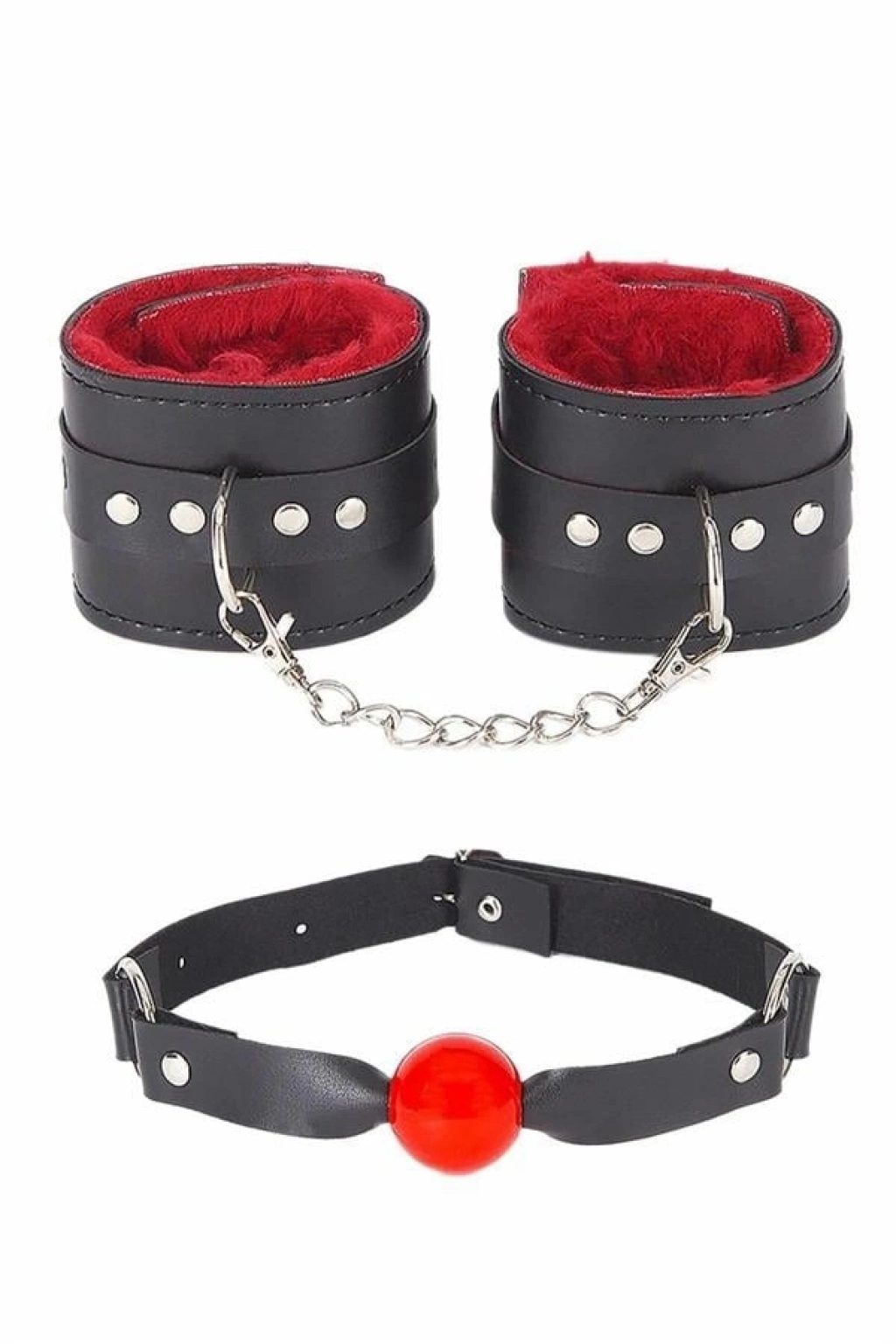 VipMarketim Ağız Topu Ve Kelepce İçi Tüylü Kırmızı Set