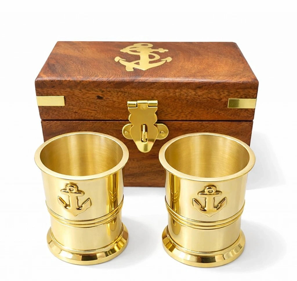 Zarafeti ve nostaljiyi sofralarınıza taşıyan Ahşap Kutulu 2'li Pirinç Shot Bardak Seti, denizci ruhunu yansıtan özel tasarımıyla dikkat çekiyor. Yüksek kaliteli pirinç malzemeden üretilen bardaklar, altın sarısı parlaklığı ve üzerindeki işlenmiş çapa figürleriyle zamansız bir şıklık sunar. Set, üzerinde pirinçten çapa amblemi bulunan el yapımı şık ahşap kutusu ile birlikte gönderilir. Kutunun içerisindeki kadife benzeri yumuşak doku, bardakların güvenle saklanmasını sağlar ve sunum kalitesini artırır. Hem dekoratif bir obje olarak vitrinlerinizi süsleyecek hem de özel davetlerinizde fark yaratacak bu set, klasik shot bardaklarından sıkılanlar için mükemmel bir alternatiftir. Deniz tutkunları, koleksiyonerler veya ofis masasında prestijli bir detay arayanlar için ideal olan bu pirinç bardak seti, babalar günü, terfi veya yeni ev hediyesi olarak sunulabilecek en anlamlı parçalardan biridir. Ürün Teknik Özellikleri ÖzellikAçıklama Bardak MalzemesiYüksek Kaliteli Parlak Pirinç Kutu MalzemesiDoğal Ahşap ve Pirinç Amblem TasarımDenizci Temalı (Çapa Kabartmalı) Kutu Kilit MekanizmasıKlasik Pirinç Kilit Sistemi Adet2 Adet Pirinç Shot Bardağı + 1 Adet Ahşap Kutu StilNostaljik, Denizci (Nautical), Lüks Kullanım Alanıİçecek Sunumu, Dekorasyon, Koleksiyon, Hediyelik Paket İçeriği1 adet Ahşap Kutulu 2'li Pirinç Shot Bardak Seti