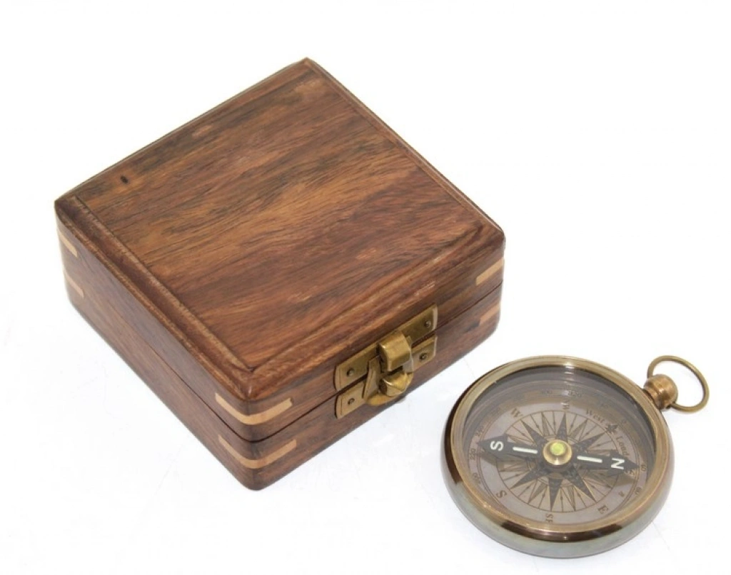 Klasik ve nostaljik tasarımıyla öne çıkan pirinç pusula, özel olarak hazırlanmış ahşap kutusu ile birlikte sunulmaktadır. Dayanıklı pirinç malzemeden üretilmiş olup, hassas yön belirleme özelliğine sahiptir. El işçiliğiyle detaylandırılmış ahşap kutu, pusulayı güvenle saklamanızı sağlarken dekoratif bir görünüm kazandırır. Koleksiyon değeri taşıyan bu özel tasarım, kamp, doğa yürüyüşleri ve seyahatler için kullanılabileceği gibi, şık bir hediye alternatifi olarak da tercih edilebilir.Paket İçeriği1 adet Ahşap Kutulu Pirinç Pusula Model 1