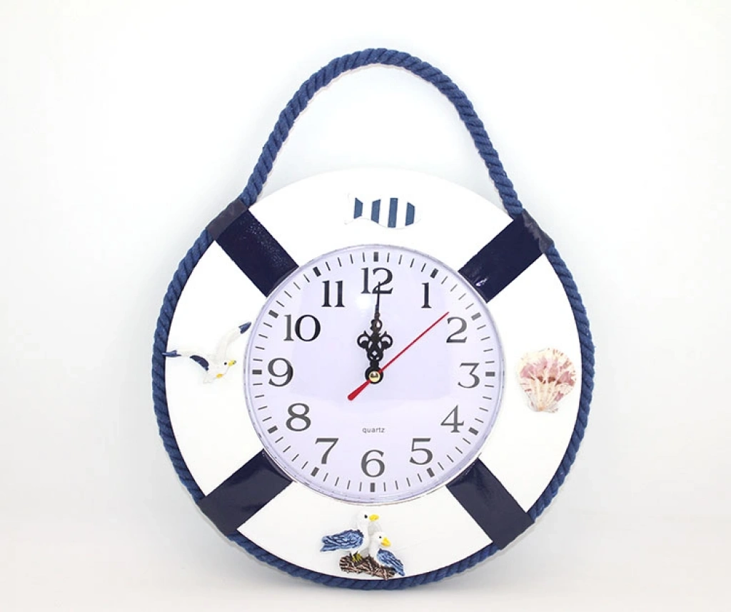 Ahşap Marin Duvara Asmalı Saat, denizcilik konseptini yansıtan özel bir tasarıma sahiptir. Ahşap malzemeden üretilmiş olup, marin ve sahil temalı dekorasyonlar için mükemmel bir tamamlayıcıdır. Üzerindeki deniz kabuğu, martı ve halat detaylarıyla göz alıcı bir görüntü sunar. Ev, ofis, kafe veya restoran gibi mekanlarda kullanıma uygundur. Saat mekanizması sessiz çalışarak rahatsız edici bir ses çıkarmaz.Paket İçeriği1 Adet Ahşap Marin Duvara Asmalı Saat