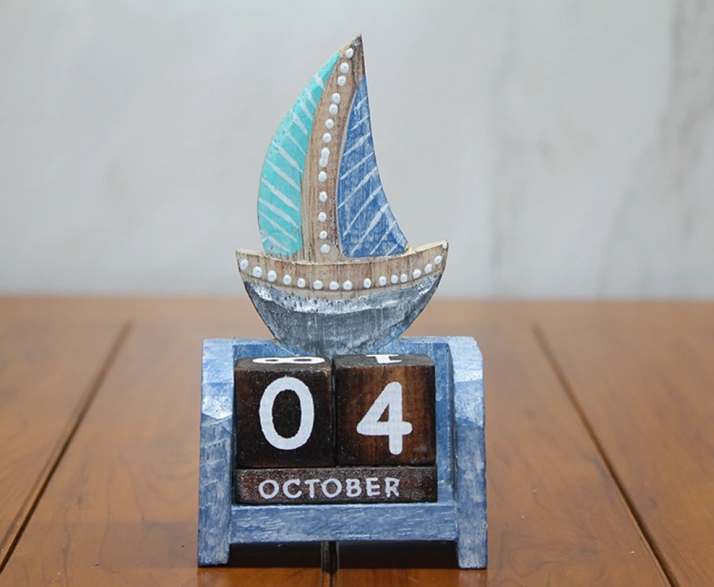 Doğal ahşaptan el işçiliğiyle üretilen yelken figürlü takvim, 13x7 cm boyutundadır. Gün, ay ve tarih blokları sayesinde her yıl tekrar kullanılabilir. Şık ve dekoratif tasarımıyla masa üstü kullanım için idealdir. Yelken figürü ile deniz temalı dekorasyonlara uyum sağlar. Dayanıklı ve estetik yapısıyla ev veya ofis için mükemmel bir masa aksesuarıdır.Paket İçeriği1 adet ahşap yelken takvim.