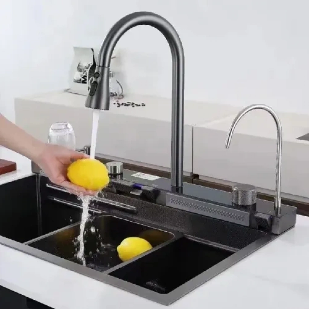 Mutfağınızda teknoloji, şıklık ve üstün işlevselliği birleştiren bu Nordmende Yeni Nesil Şelale Eviye Seti ile mutfak deneyiminizi geleceğe taşıyın! Bu set, size sadece bir eviye değil, tam donanımlı bir akıllı mutfak istasyonu sunar.Öne Çıkan Lüks Özellikler:Dijital LED Gösterge: Elektrik bağlantısı istemeyen dinamolu sistemi sayesinde, suyun sıcaklığını ve basıncını anlık olarak gösterir. Mutfakta tam kontrol parmaklarınızın ucunda.Şelale Musluk ve El Duşu: Modern şelale akışı ile estetik bir dokunuş sağlarken, spiral 4 fonksiyonlu el duşu başlığı ile tüm temizlik ihtiyaçlarınızı kolayca karşılarsınız.Piyano Tip Tuş Takımı: Ergonomik ve şık piyano tip tuş takımı ile su akış fonksiyonları arasında pratik geçiş yapın.Üstün Malzeme ve Boyut: 75 x 46 cm geniş eviye ölçüsü ve 304 kalite paslanmaz çelik tezgahı ile uzun ömürlü dayanıklılık ve hijyen sunar.İşlevsel Detaylar:Çok Fonksiyonlu Hazneler: Bardak yıkama haznesi, sebze yıkama çıkışı ve tabak yıkama çıkışı ile yıkama ve hazırlık işlemlerini optimize eder.Sessiz ve Çevre Dostu: Su sesi önleyici kaplama ve bant sayesinde sessiz kullanım sunar. Akıllı teknolojisi ile su ve enerji verimliliği sağlayarak çevre ve cep dostudur.Kapsamlı Set İçeriği: Sabunluk dahil olmak üzere tüm montaj ve kullanım aparatları kutu içeriğinde mevcuttur. Pratik montaj ile dakikalar içinde kullanıma hazırdır.Bu eviye seti, minimalist ve şık tasarımıyla her mutfak dekorasyonuna uyum sağlar ve mutfağınıza hak ettiği konforu getirir.
