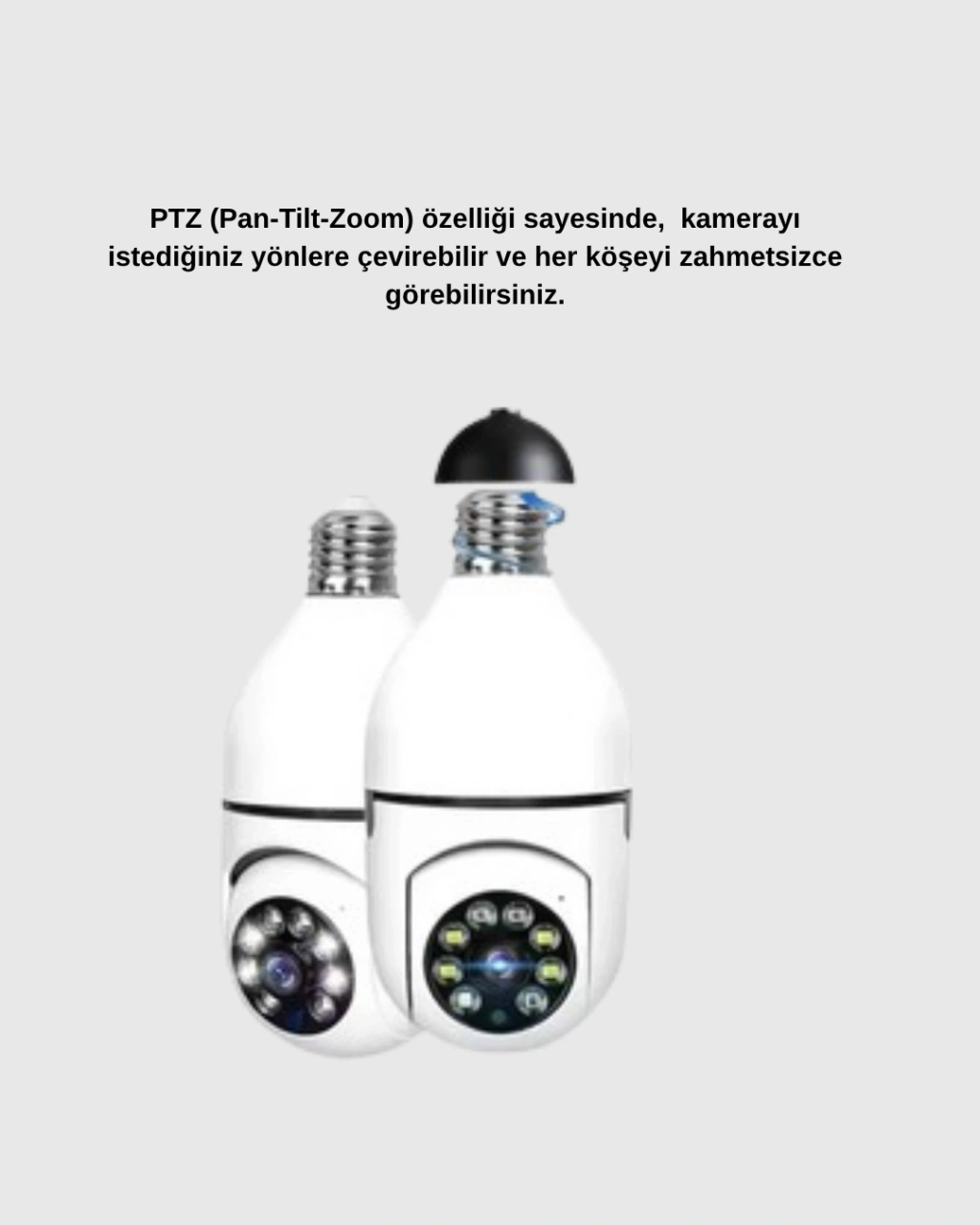 Akıllı Duylu 360° Güvenlik Kamerası, evinizi veya iş yerinizi her açıdan korumak için tasarlanmış yenilikçi bir güvenlik çözümüdür. PTZ (Pan-Tilt-Zoom) teknolojisi sayesinde sadece sabit bir açıdan değil, tüm yönlerde geniş bir izleme alanı sunar. 360 derece dönebilme özelliği, kamerayı istediğiniz yöne çevirmenizi sağlar; böylece hiçbir köşe, hiçbir detay gözden kaçmaz.Bu kamera, telefon uygulaması üzerinden uzaktan kontrol edilebilir. Canlı görüntü takibi, kayıt izleme veya yön değiştirme işlemleri birkaç dokunuşla yapılabilir. Pan ve tilt fonksiyonları sayesinde geniş oturma odaları, uzun koridorlar veya çok odalı evlerde tam kapsamlı güvenlik sağlanır.Aydınlatma işleviyle birleşen akıllı duy tasarımı, hem ışık hem de güvenlik avantajını bir arada sunar. Enerji tasarruflu LED sistemiyle aydınlatma sağlarken, aynı anda çevreyi kayıt altına alır.Tak ve çalıştır mantığında tasarlanan bu cihaz, karmaşık kablo bağlantılarına ihtiyaç duymaz. Sadece duy soketine takarak kullanmaya başlayabilirsiniz. Gelişmiş hareket algılama sensörleri, olağandışı aktiviteleri anında tespit eder ve telefonunuza bildirim gönderir.Modern teknolojiyi ev güvenliğiyle birleştiren Akıllı Duylu 360° Kamera, güvenliğiniz için pratik, güçlü ve şık bir çözümdür.