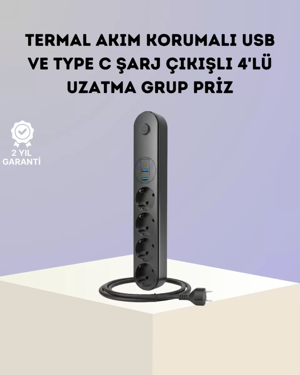 4 prizli akım korumalı çoklu priz, modern yaşamın artan enerji ve bağlantı ihtiyaçlarına pratik bir çözüm sunar. 2 USB ve 1 Type-C çıkışı sayesinde telefon, tablet ve diğer taşınabilir cihazlarınızı ek adaptöre gerek kalmadan şarj edebilirsiniz. 2500 Joule maksimum koruma kapasitesi ile cihazlarınızı ani voltaj dalgalanmalarına karşı güvence altına alır.Akıllı akım dengeleme teknolojisi, bağlı cihazları otomatik algılayarak ideal enerji dağılımı yapar. Bu özellik hem şarj verimliliğini artırır hem de cihaz bataryalarının korunmasına katkı sağlar. Termal akım koruma sistemi, aşırı ısınma ve kısa devre durumlarında devreyi otomatik olarak keserek güvenli kullanım sunar.Yüksek kalite PC-ABC gövde malzemesi, ısıya ve darbelere karşı dayanıklıdır. 20.000 kez tak-çıkar ömrüne sahip priz yuvaları, uzun yıllar güvenle kullanılabilir. Led göstergeli açma kapama anahtarı, 10.000 kez kullanıma dayanıklı yapısıyla dikkat çeker.2 metrelik kablosu, esnek kullanım alanı sunar ve masa altı, TV ünitesi veya ofis ortamlarında rahat yerleşim sağlar. Siyah renkli sade tasarımı, hem ev hem profesyonel alanlarda estetik bir görünüm oluşturur.Bilgisayarlar, kameralar, televizyonlar, yazıcılar ve diğer elektronik cihazlarla uyumlu olan bu çoklu priz, güvenlik ve fonksiyonelliği bir arada arayan kullanıcılar için ideal bir tercihtir.